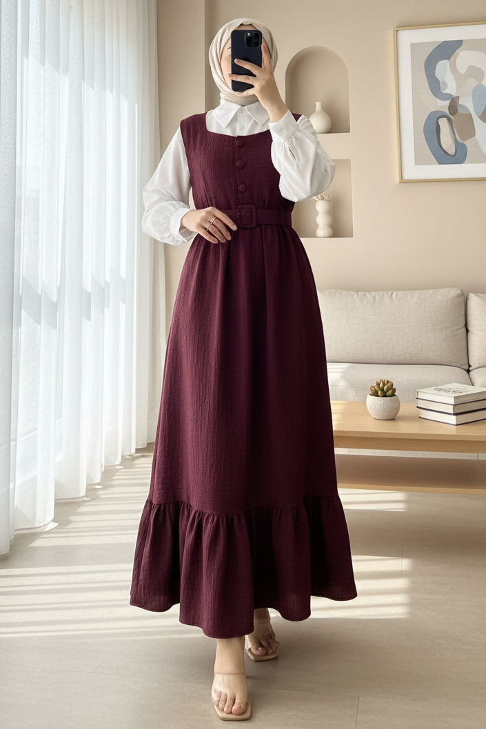 Top Düğmeli Gömlekli İkili Takım Jile -Bordo
