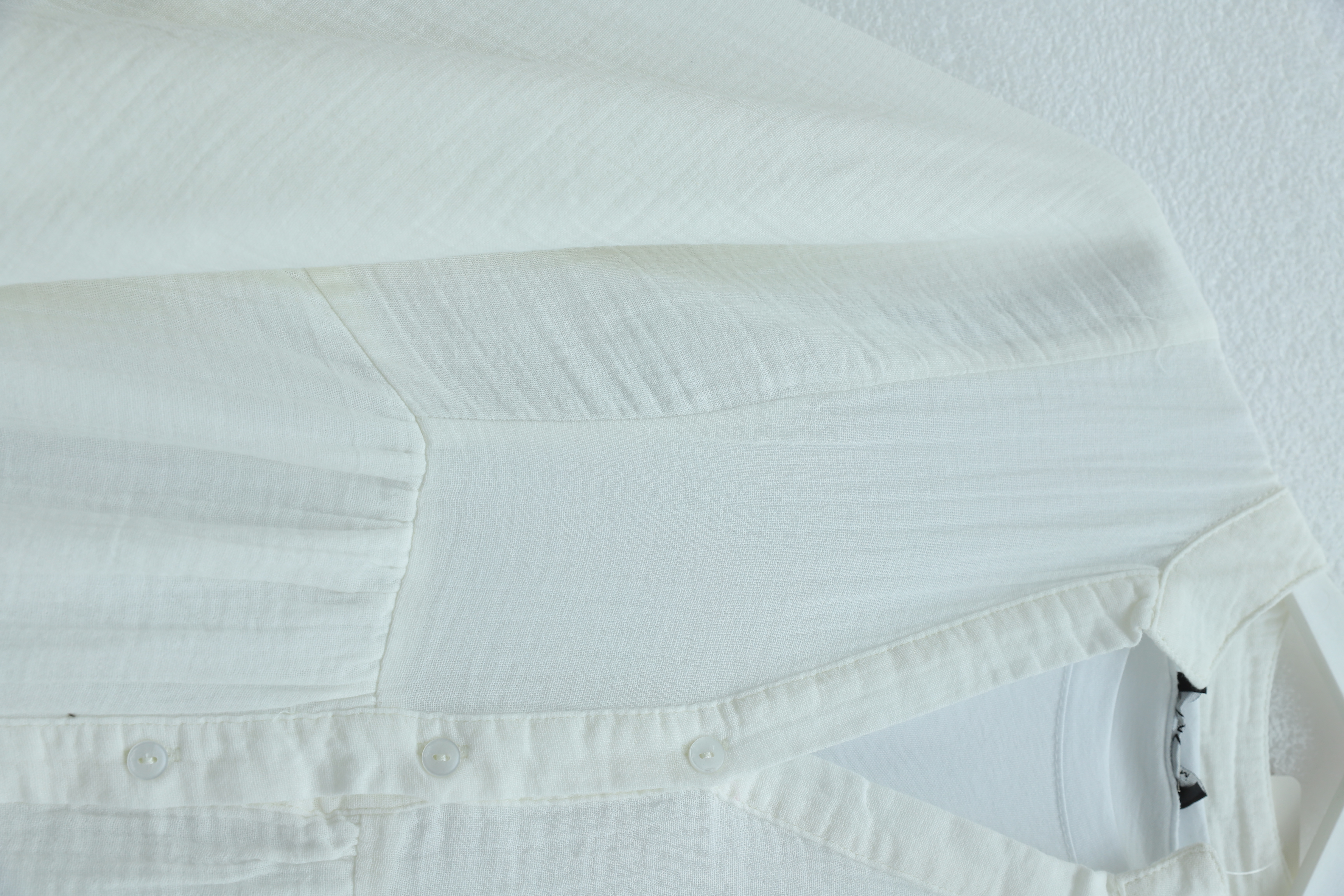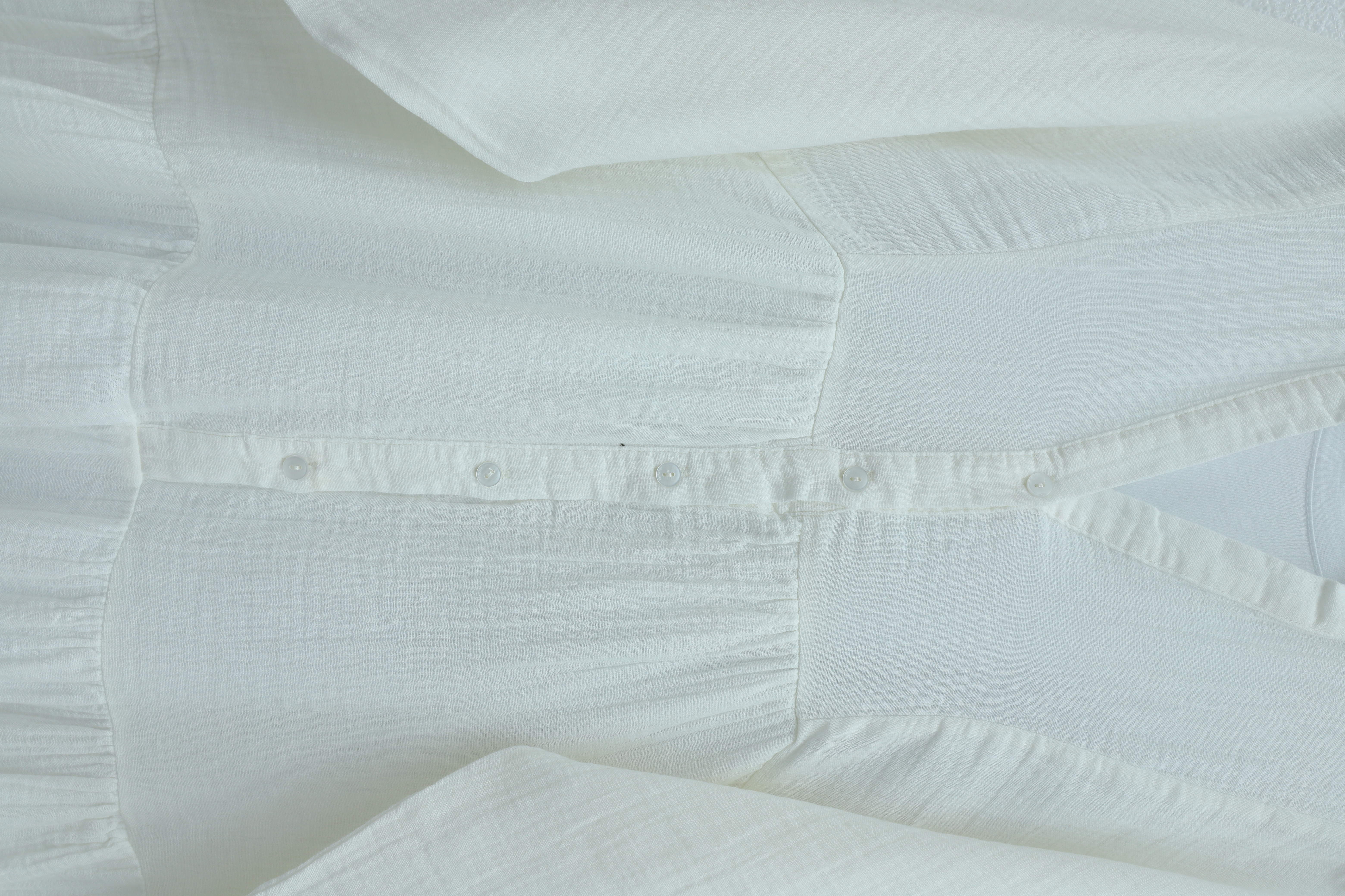 V Yaka Yarım Düğmeli Kolu Lastikli Parçalı Müslin Elbise -Beyaz