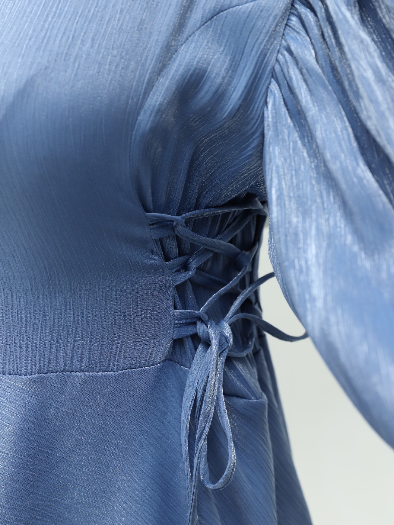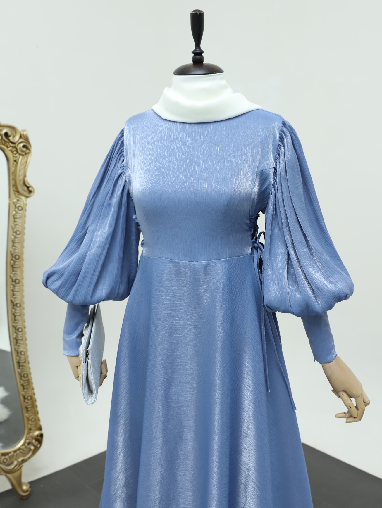 Yanları Bağlamalı Balon Kol Jakarlı Abiye -Bebe Mavi