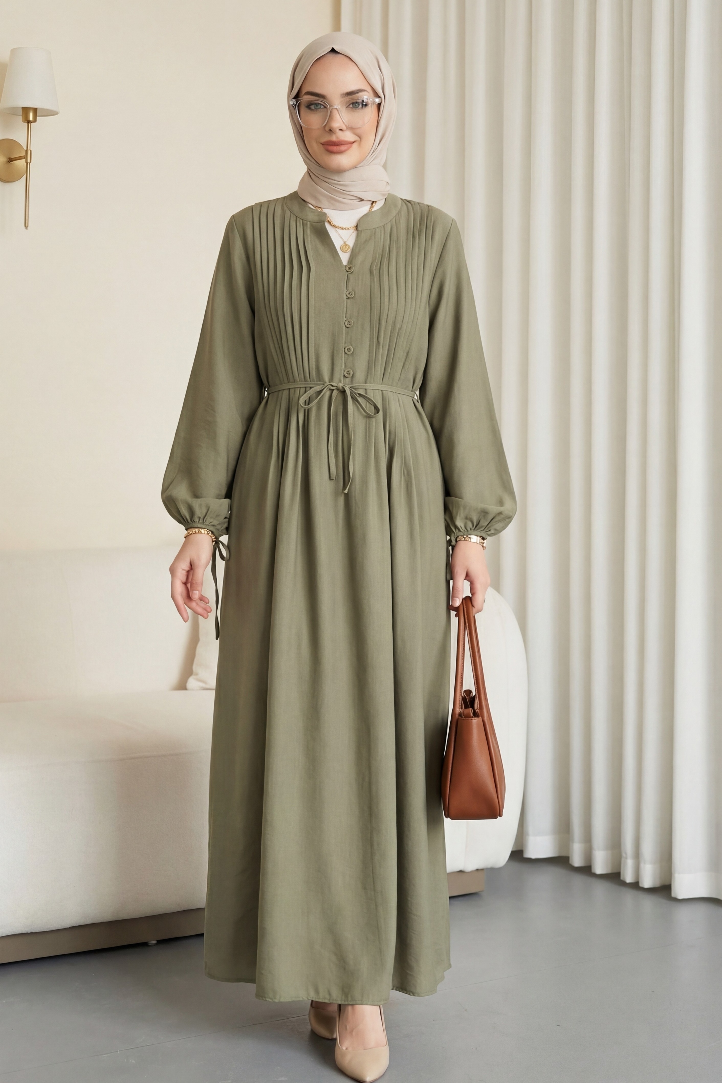 Yarım Düğmeli Nervürlü Bağcıklı Tensel Elbise, zarif ve rahat bir stil sunar. Nervür detayları tasarıma ince bir hareket katarken, yarım düğmeli formu sade bir görünüm sağlar. Bağcıklı bel detayı silueti ön plana çıkarır. Tensel kumaşı hafif ve nefes alabilendir.