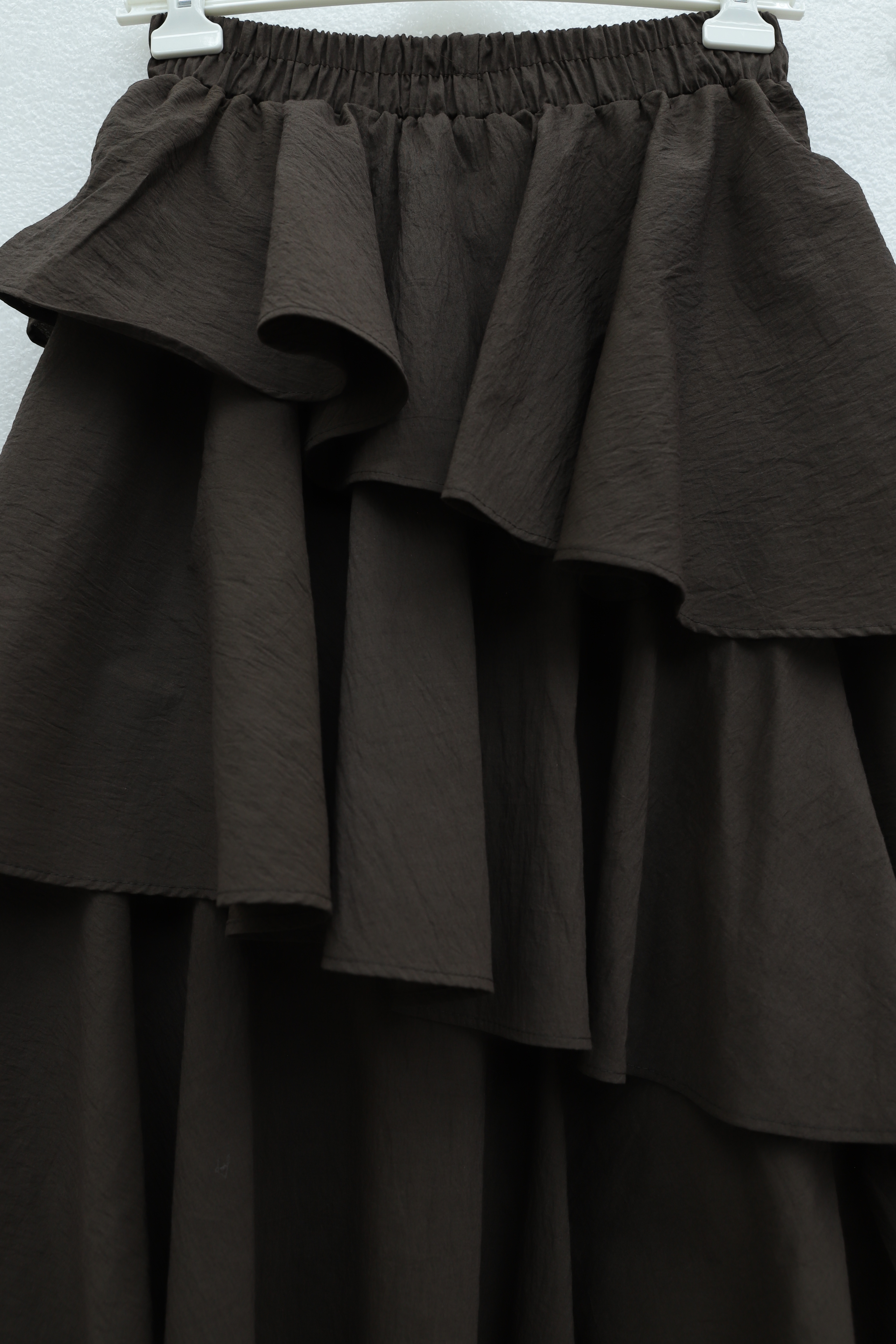 Beli Lastikli Katlı Astarlı Cupra Etek -Kahve