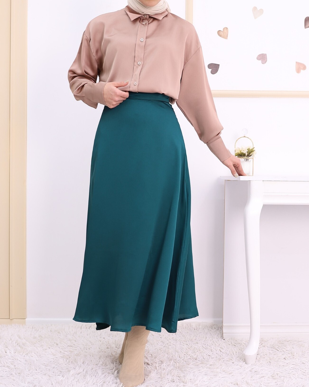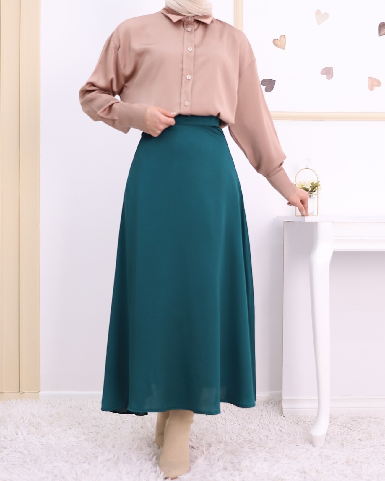 Not: Ürün içeriği etekten oluşmaktadır. (Gömlek, ayakkabı, çanta ve takılar dekor amaçlı kullanılmaktadır.)