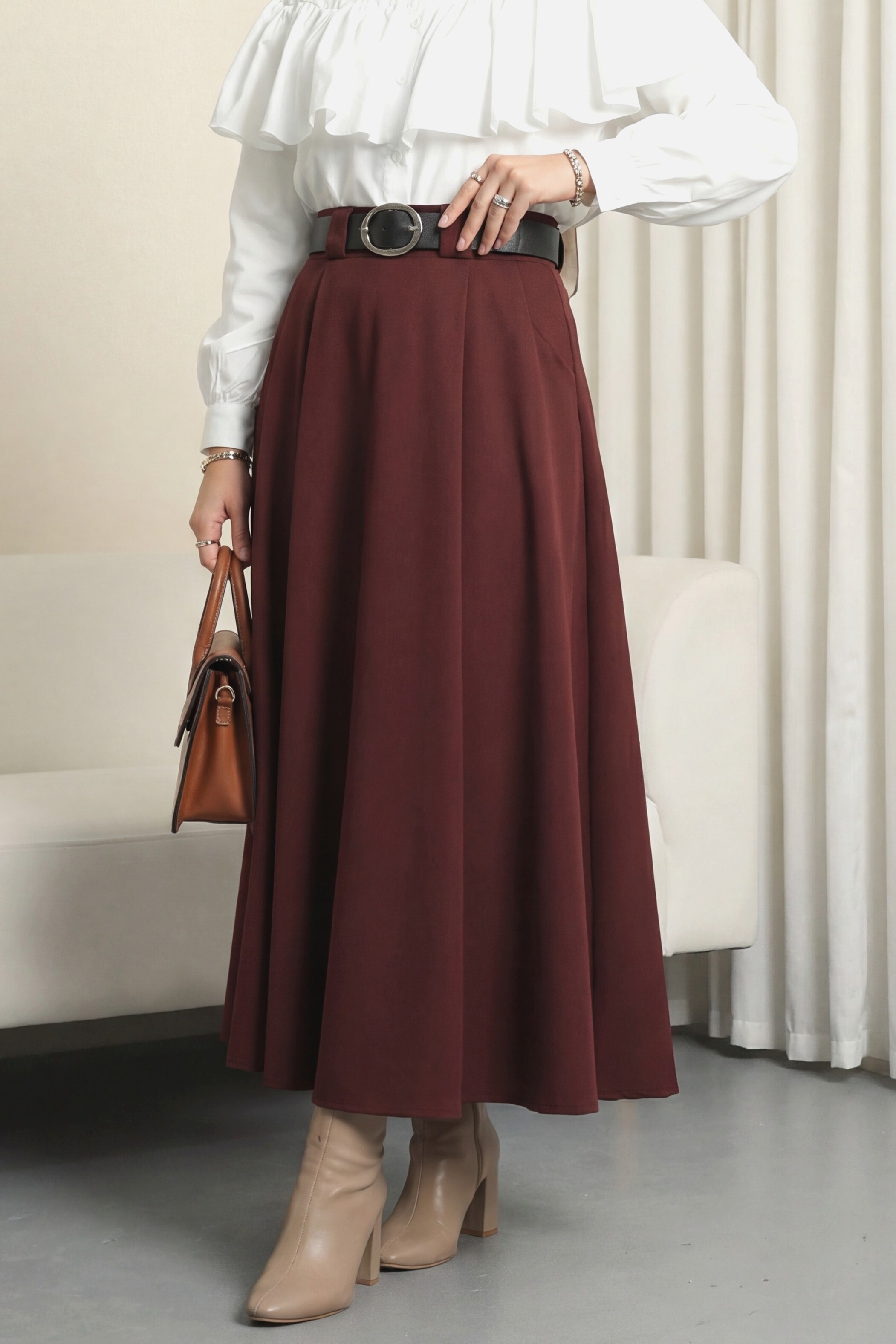 “Tivil etek modeli”, “pileli kemerli etek”, “cepli fermuarlı etek”, “şık günlük etek” gibi adlandırılabilir.