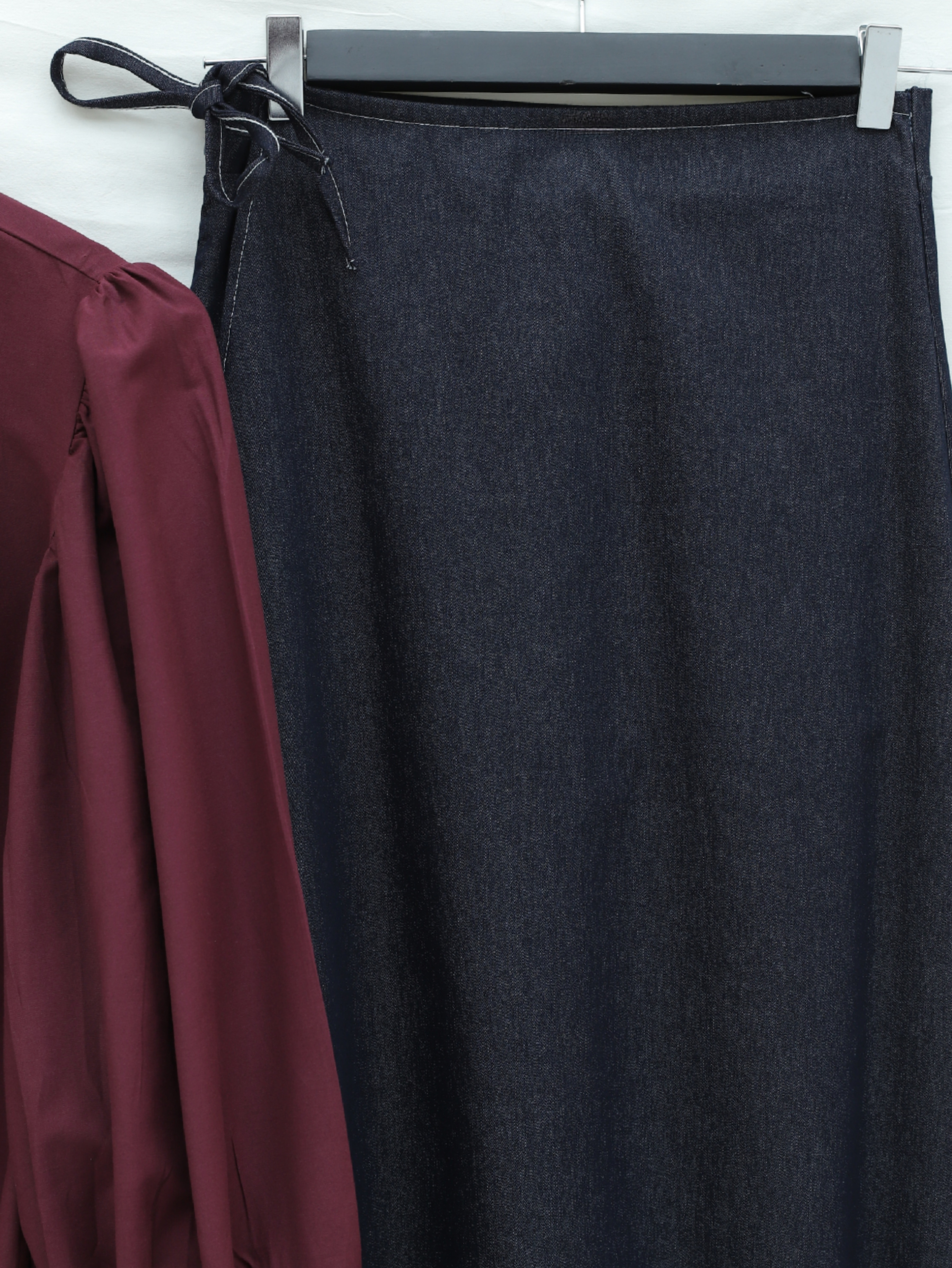 “Kot etek modeli”, “bağcıklı denim etek”, “fermuarlı kot etek”, “şık günlük kot etek” gibi adlandırılabilir.