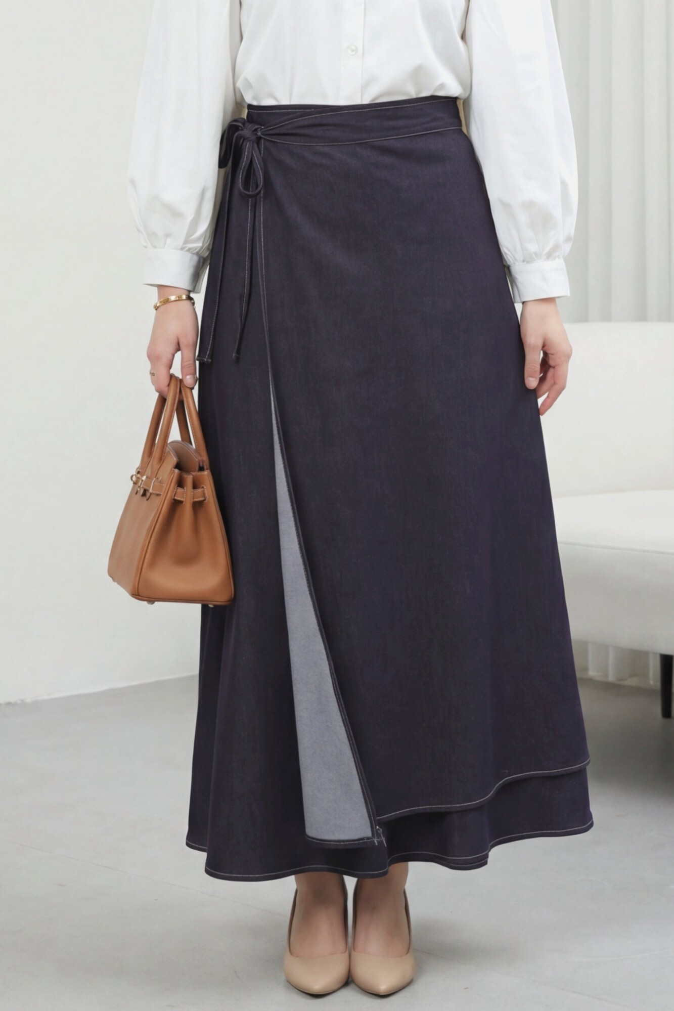 “Kot etek modeli”, “bağcıklı denim etek”, “fermuarlı kot etek”, “şık günlük kot etek” gibi adlandırılabilir.