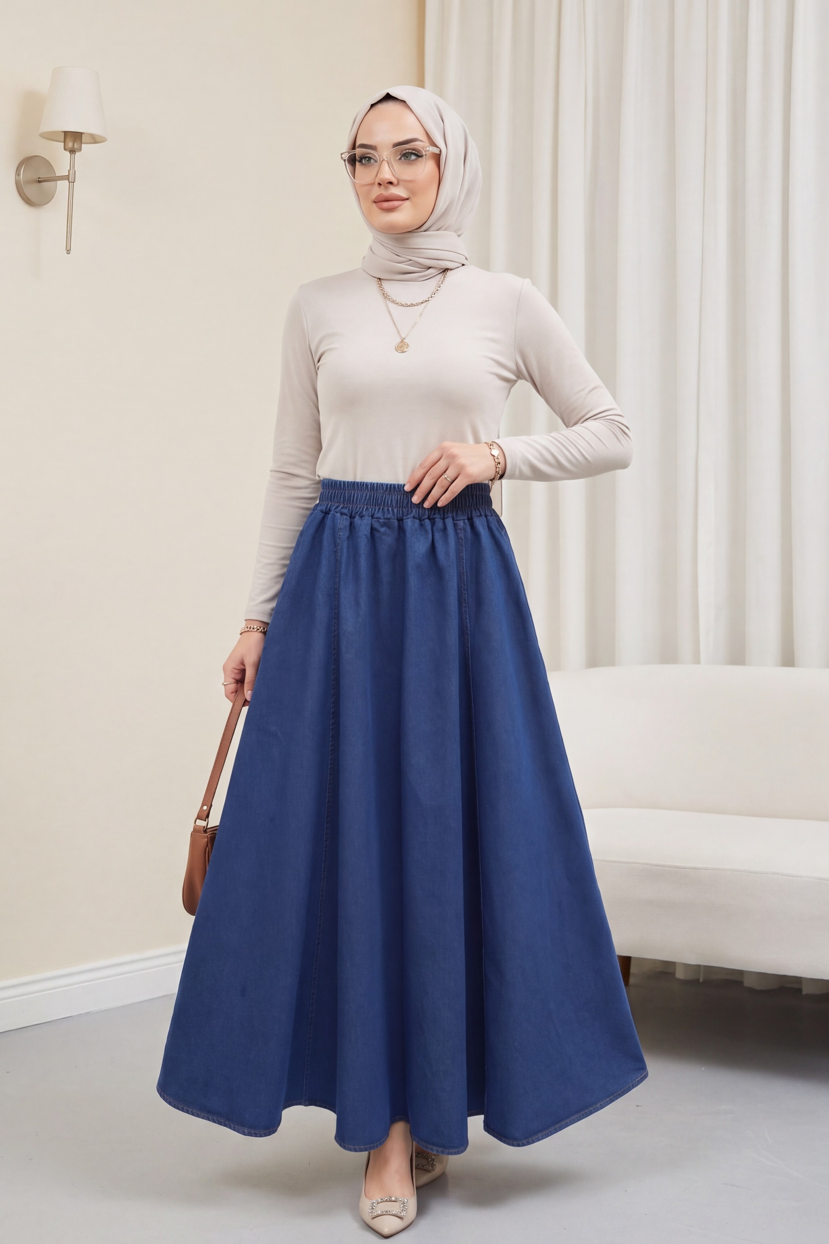 Yan Cepli Beli Lastikli Kot Etek, rahat ve zamansız bir stil sunar. Yan cep detayı pratik kullanım sağlarken, beli lastikli formu gün boyu konfor sunar. Kot kumaşı dayanıklı ve şıktır. Günlük kombinlerde kolayca tercih edilir. Vücuda oturan fakat sıkmayan ideal kalıbı ile dengeli bir duruş sağlar.