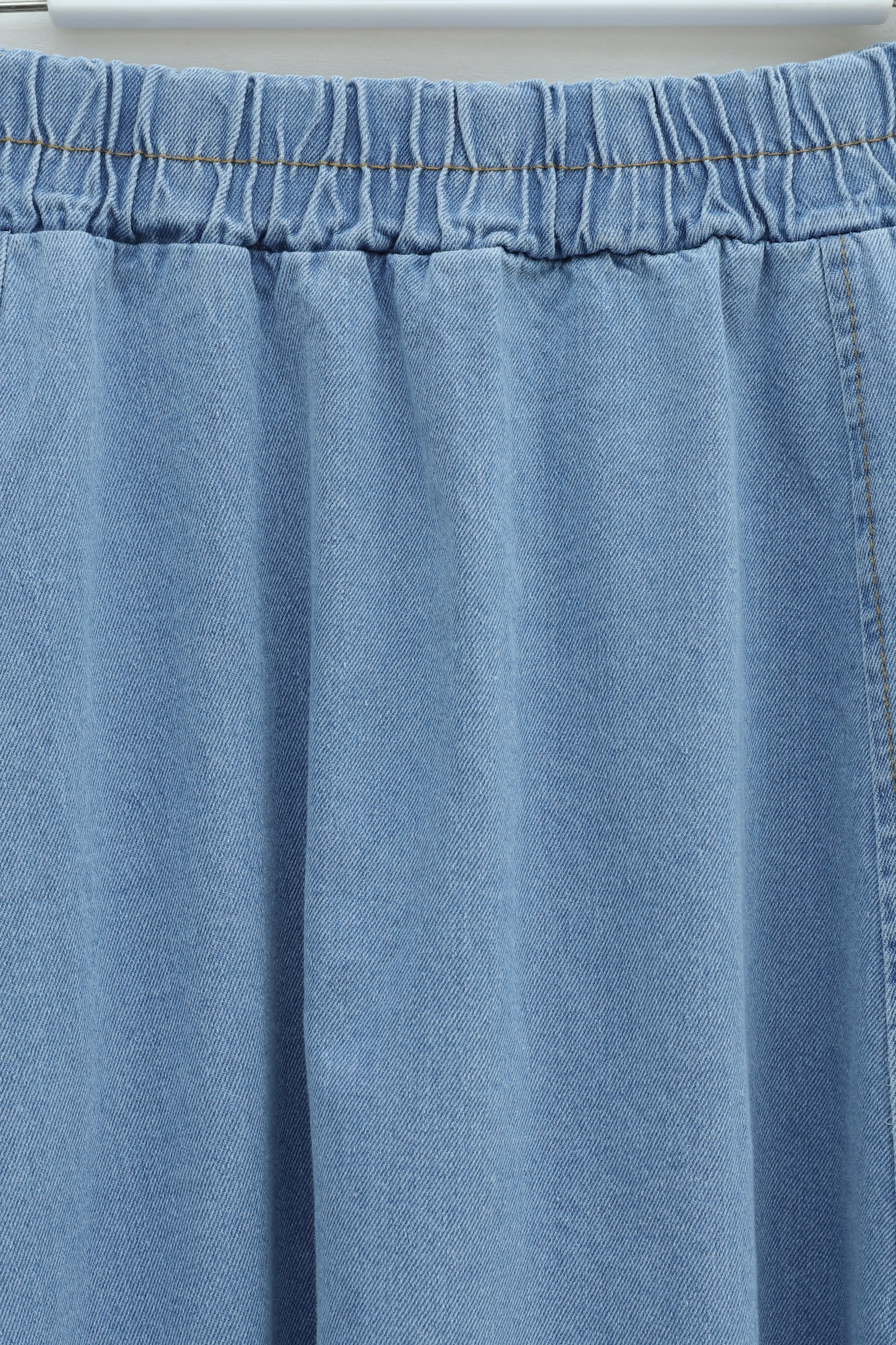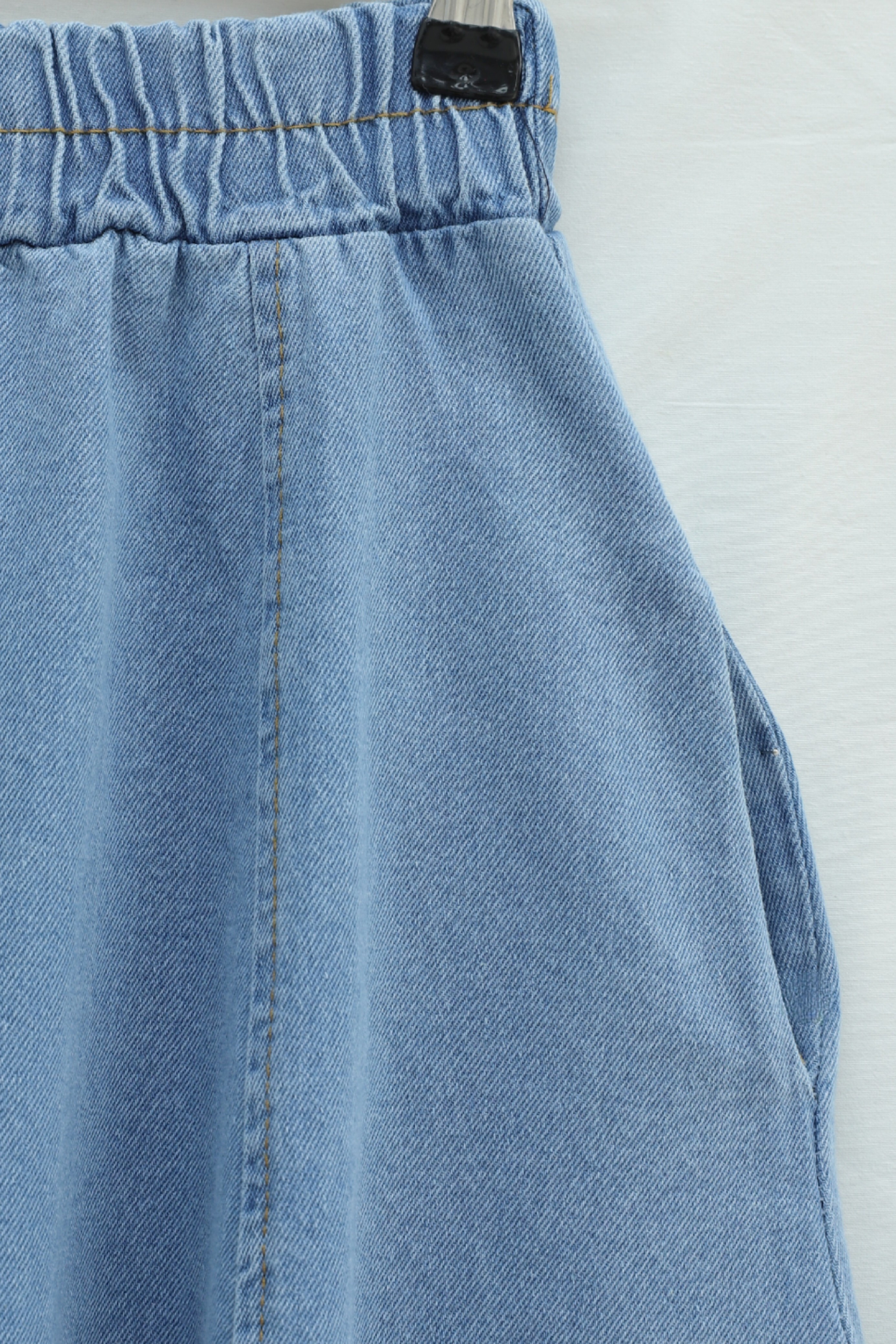 Yan Cepli Beli Lastikli Kot Etek -Açık Mavi