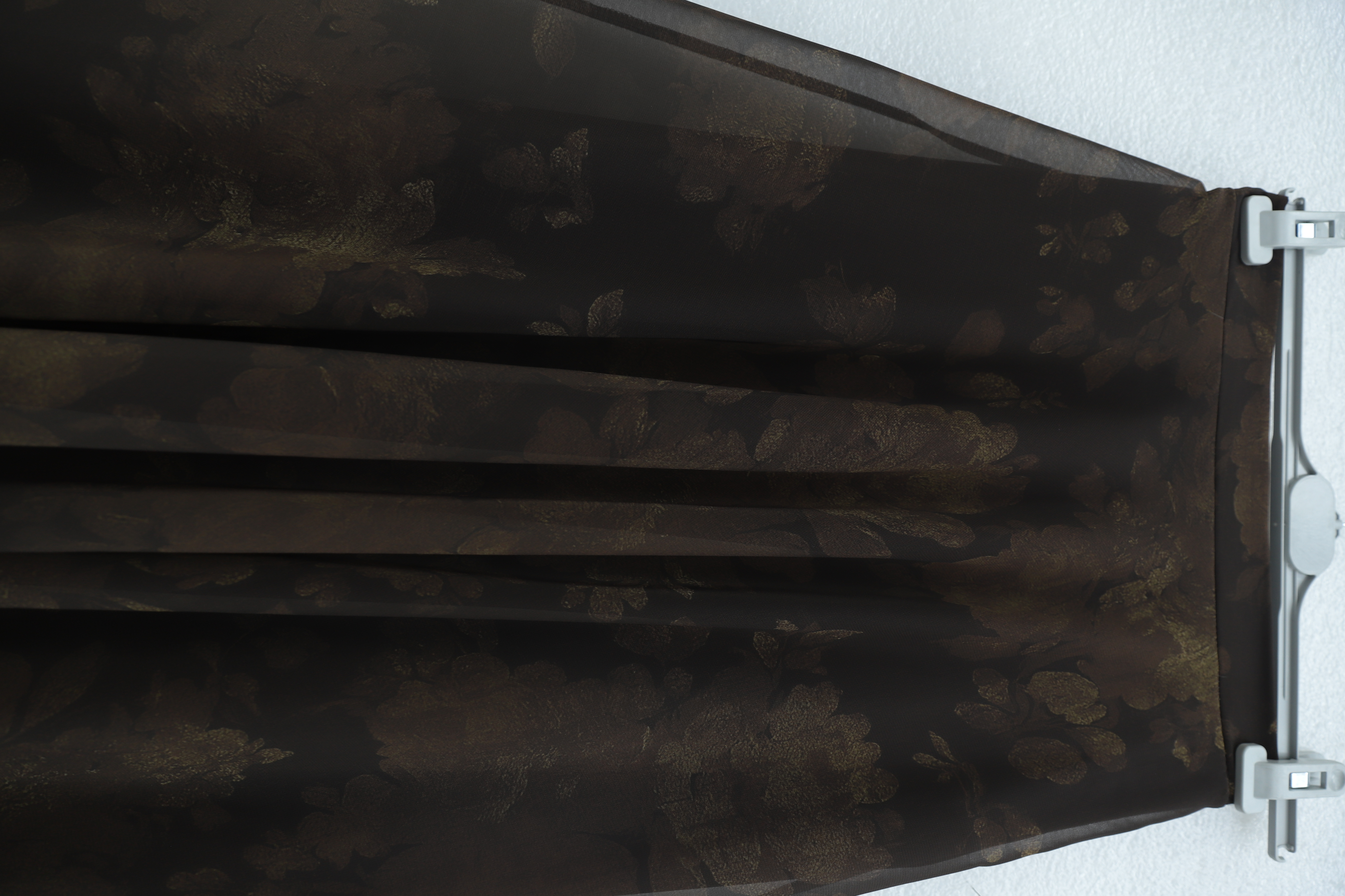 Yandan Fermuarlı Desenli Astarlı Şifon Etek -Kahve