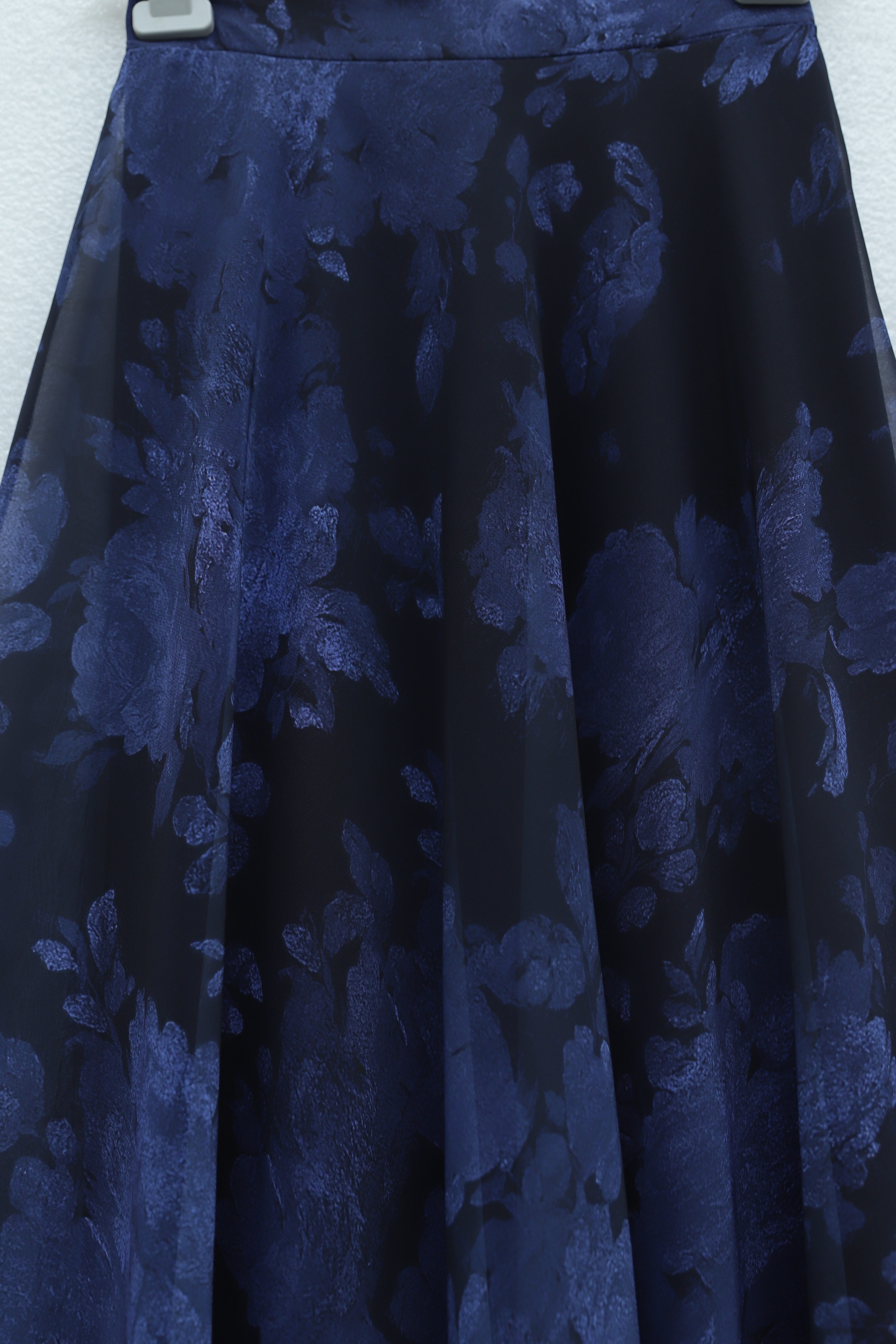 Yandan Fermuarlı Desenli Astarlı Şifon Etek -Laci