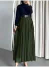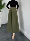 ·         Drapeler, 2025 yılında da yükseliştedir. Hareketli görünümüyle dikkat çeken drapeli tesettür etek modelleri, sade üstlerle kombinlenerek dengeli bir görünüm sunar.