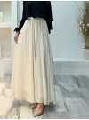 Çift katmanlı etekler, sade kazak ve şık ayakkabılarla kombinlendiğinde modern bir görünüm sağlar. Tül detaylar farklı bir hava katar.