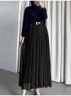 Yukarıdaki tesettür etek modellerinin yanı sıra katmanlı tasarımlar da kombinlerde yer bulan seçenekler arasındadır. Bu kapsamda farklı hem bedenlerde hem de renklerde satışa sunulan ve tül gibi farklı kumaşların kombinlendiği çift katmanlı etekler, 2025’in en sevilen modellerinden biridir.