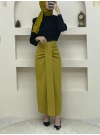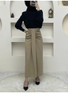 ·         Drapeler, 2025 yılında da yükseliştedir. Hareketli görünümüyle dikkat çeken drapeli tesettür etek modelleri, sade üstlerle kombinlenerek dengeli bir görünüm sunar.