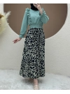 Drapeli etekler, sade üstlerle dengelenerek hareketli tasarımını ön plana çıkarır. Günlük kullanımda rahatlık, özel günlerde ise zarif bir görünüm sunar.