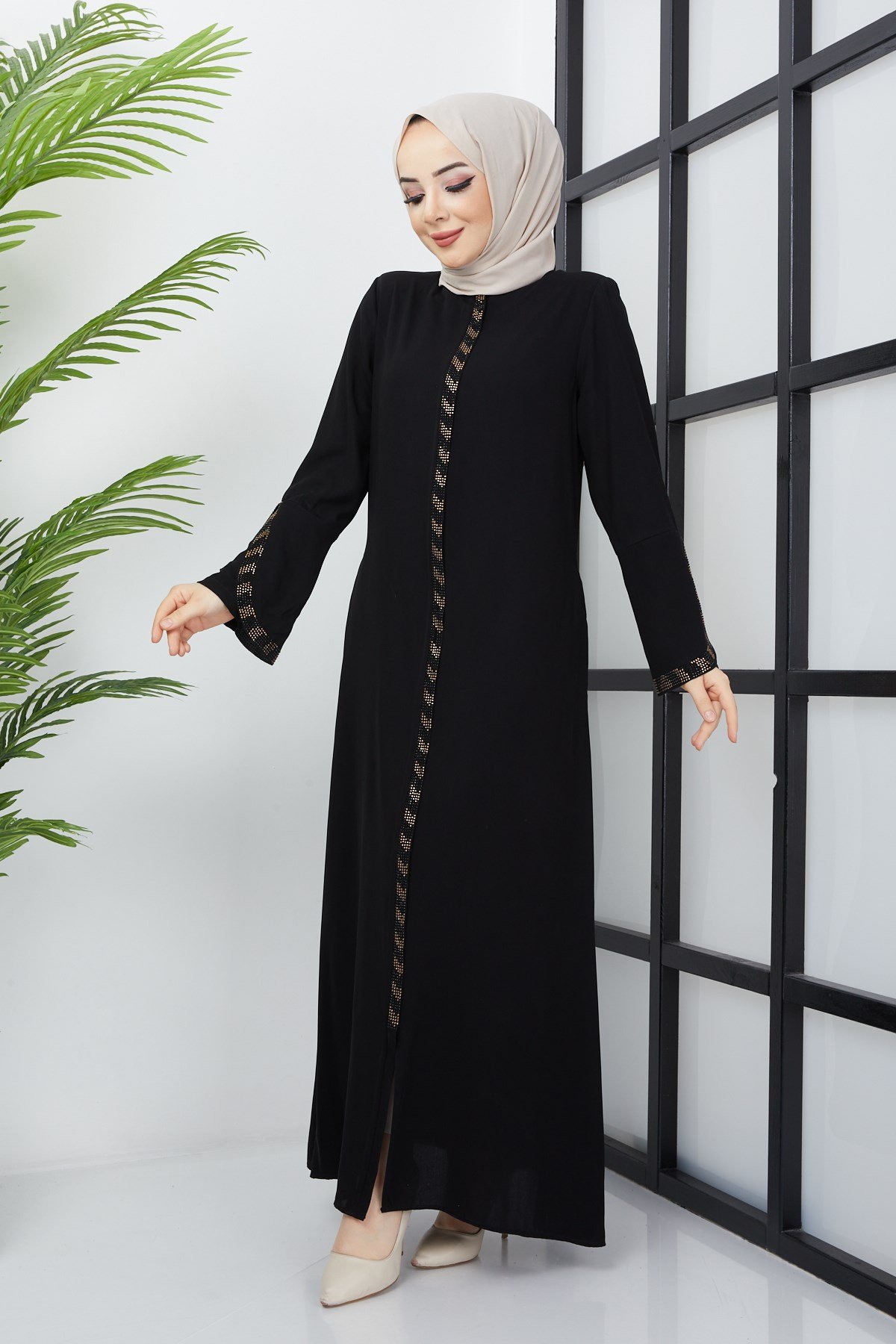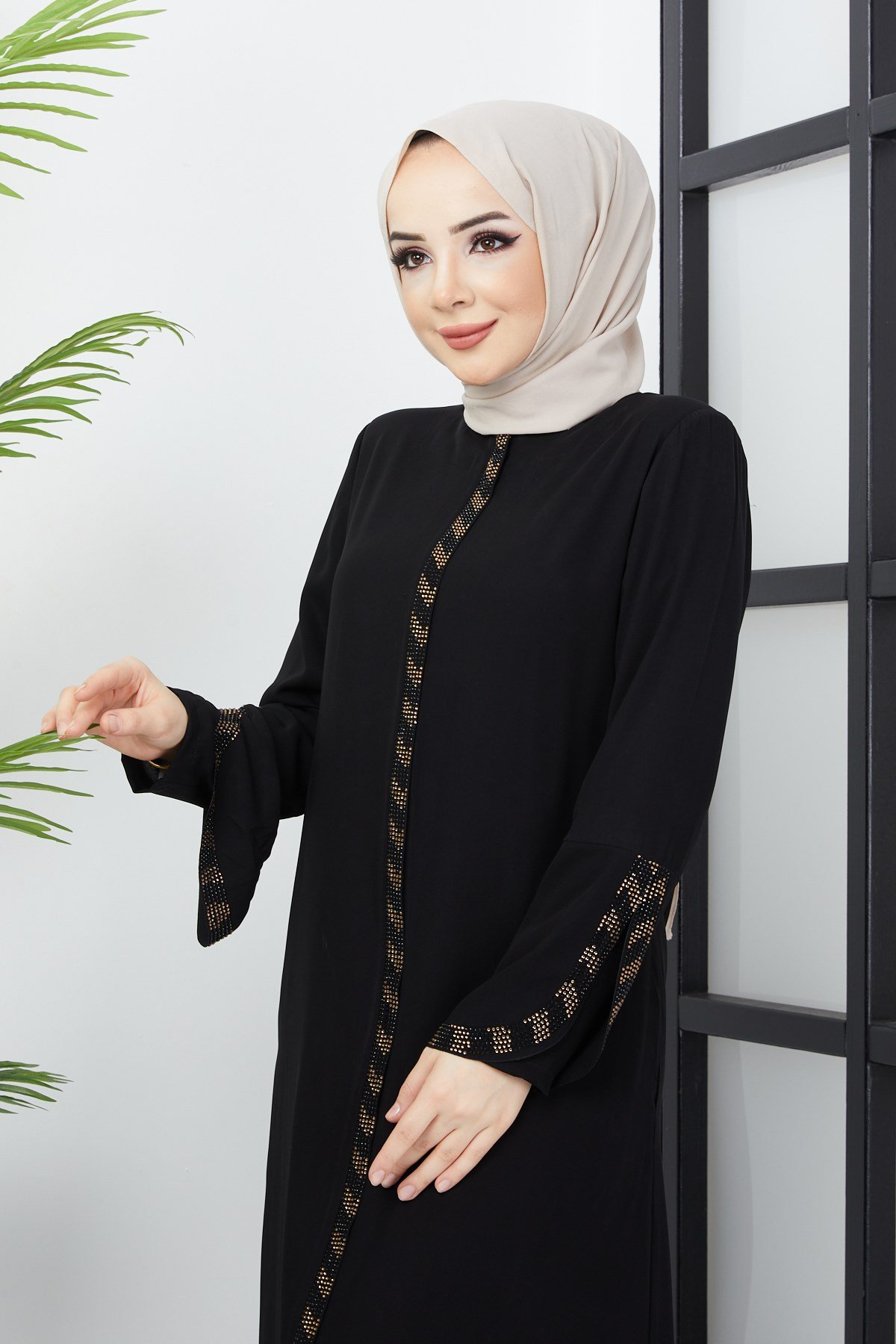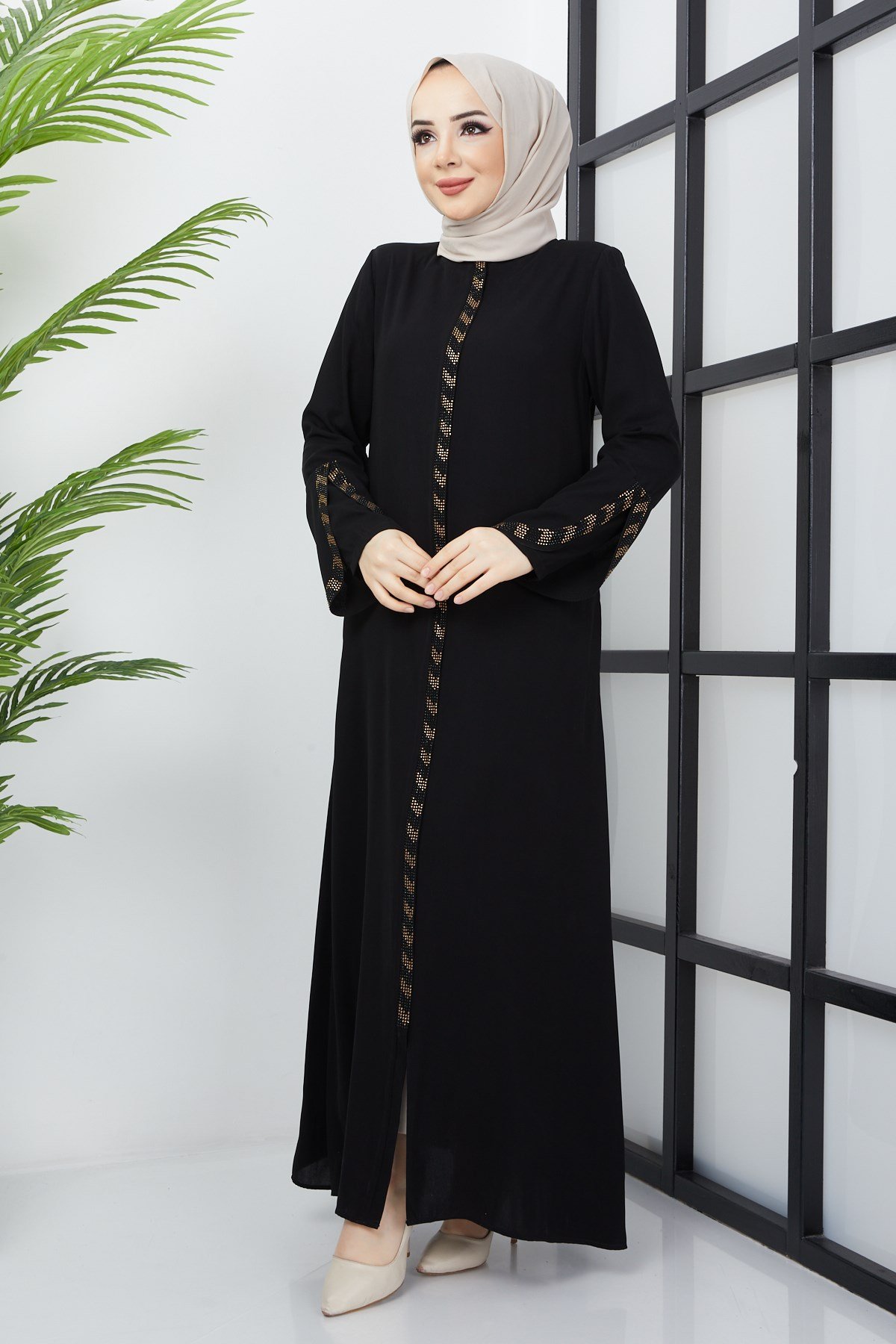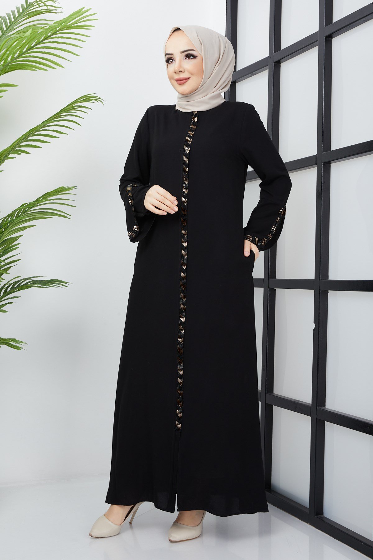 Ürün Özelliği : Yeni sezon Büyük Beden Taş İşleme Detaylı Siyah Ferace modelidir. İki tane kullanılabilir cep vardır. Önden fermuar ile kapanmaktadır. Gizli patlıdır. Ön pat ve kolları taş işleme detaylıdır. Vatkalıdır. Ürün renginde konsept çekimlerinden dolayı ton farklılığı olabilir.
