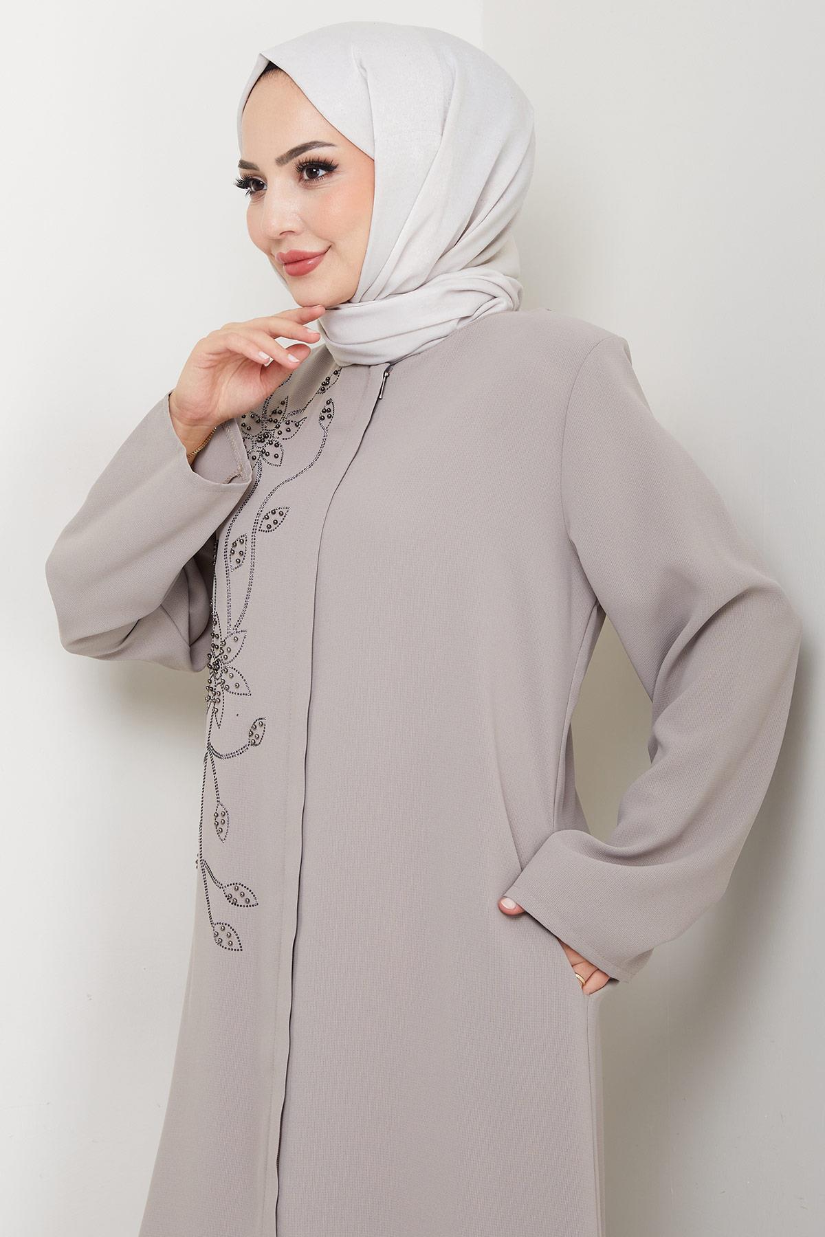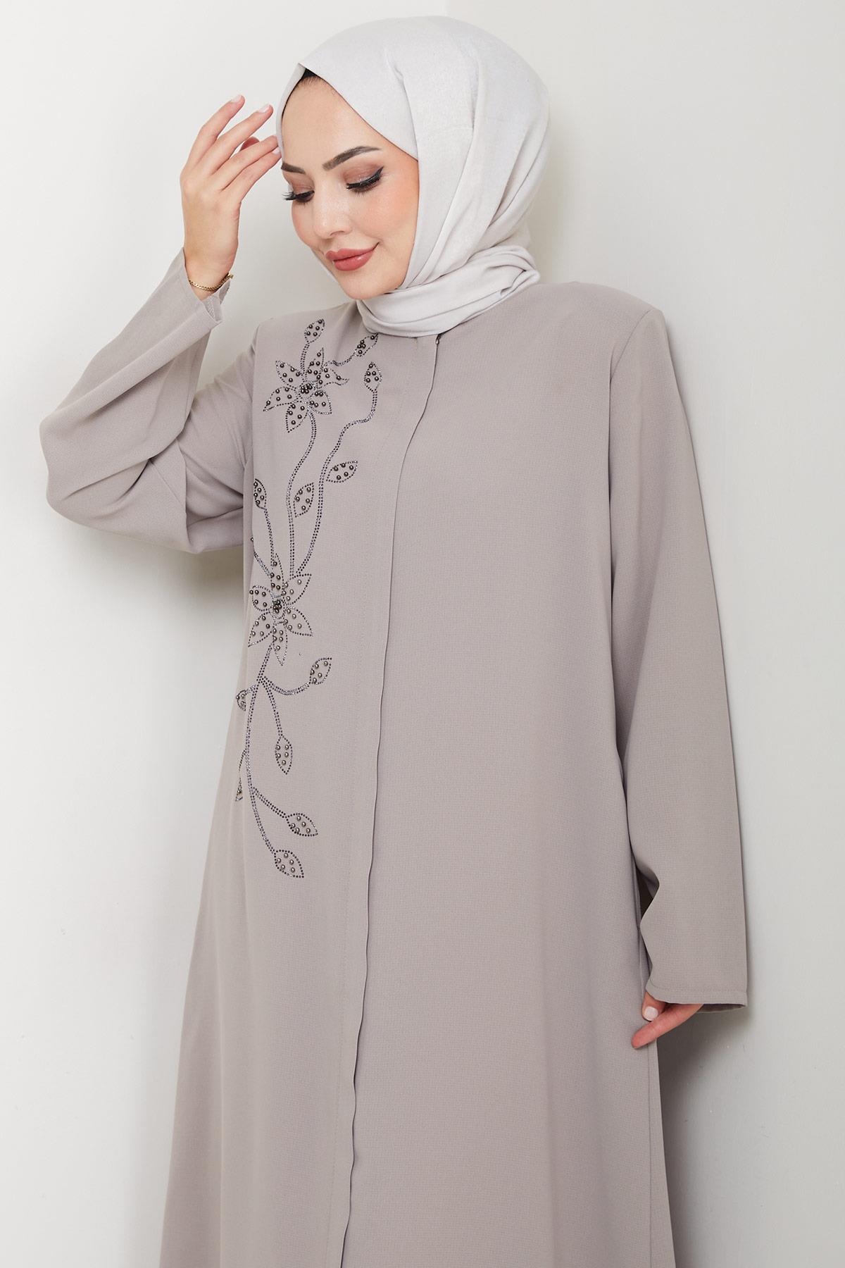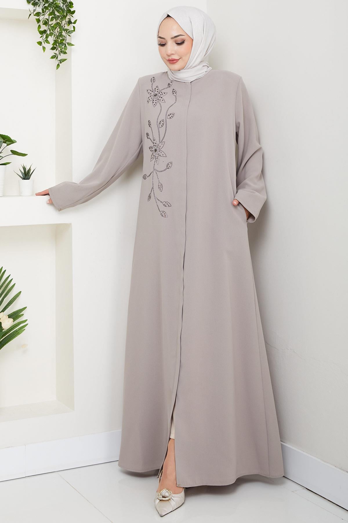 Çiçek Detay Taşlı Ferace Bej HM2847 Özellikleri