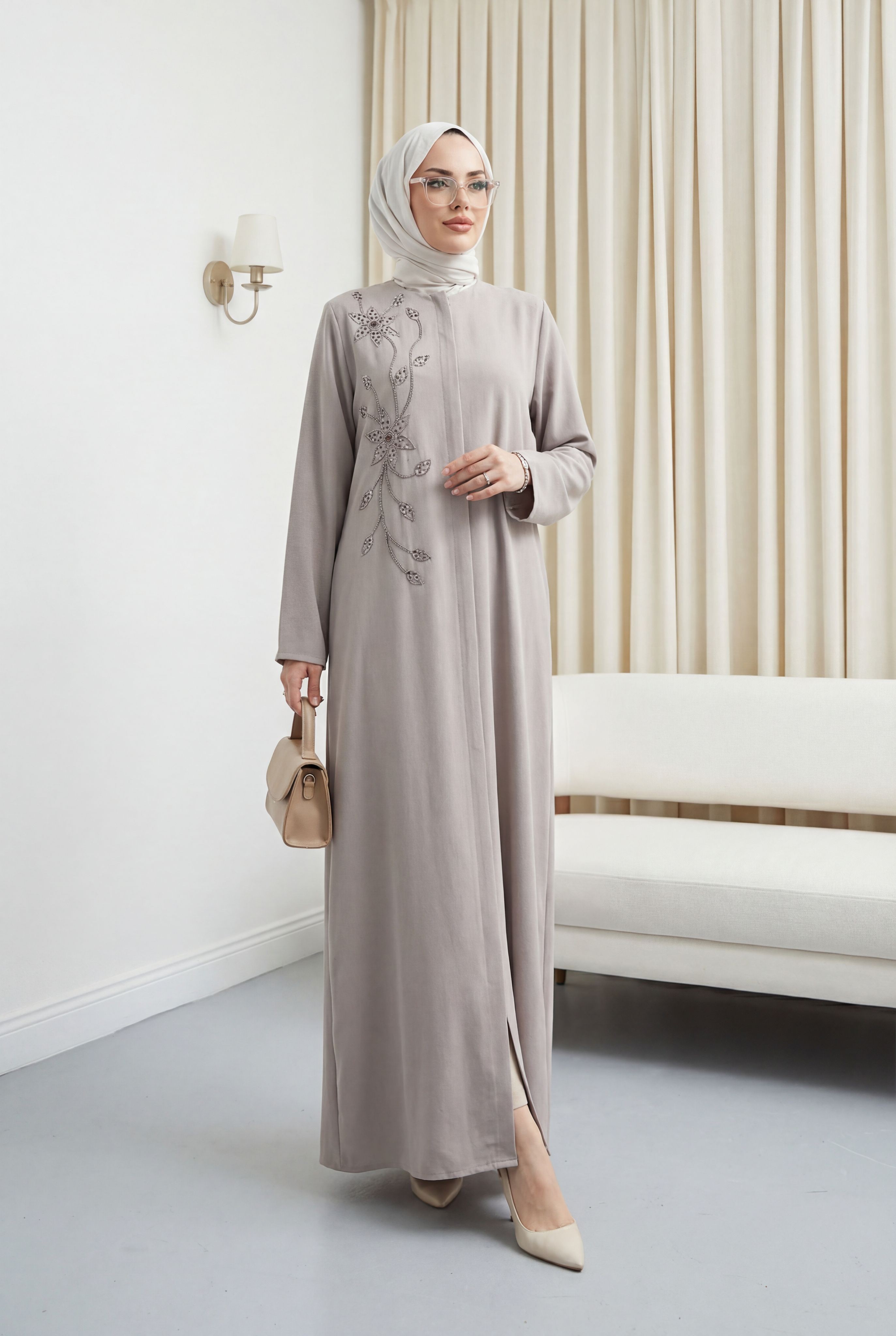 Çiçek Detay Taşlı Ferace Bej HM2847