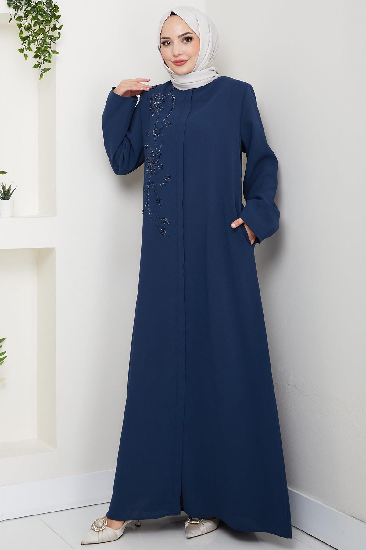 Çiçek Detay Taşlı Ferace Petrol HM2847 Özellikleri