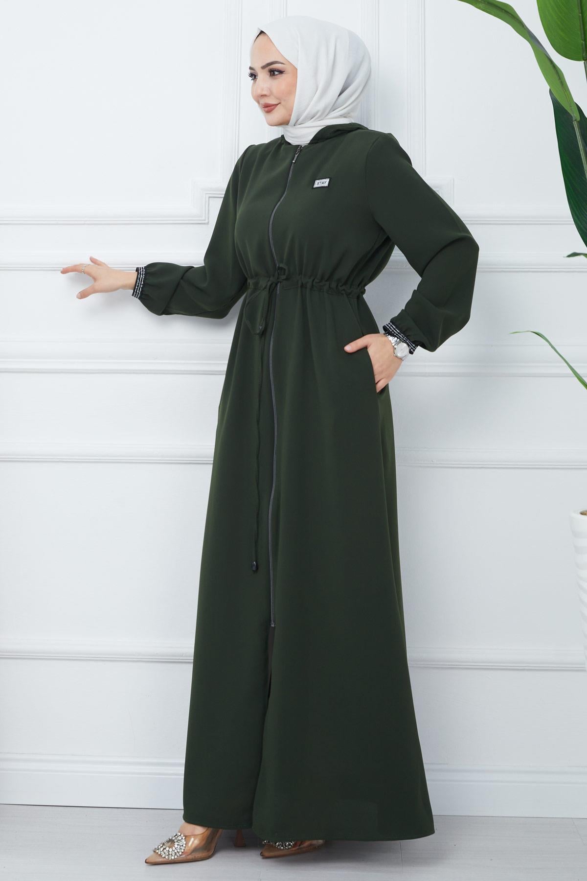 File Kapşonlu Bağlamalı Ferace Haki HM2360