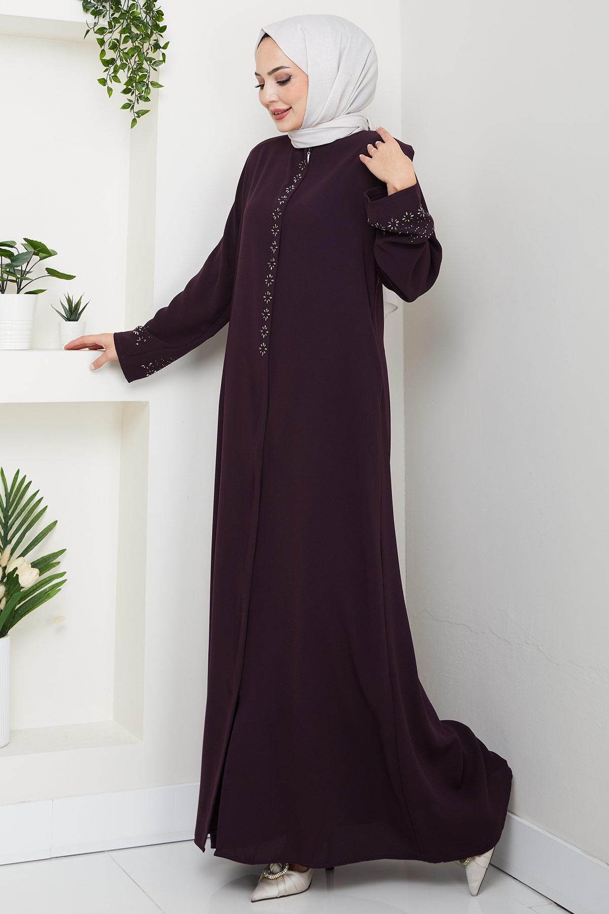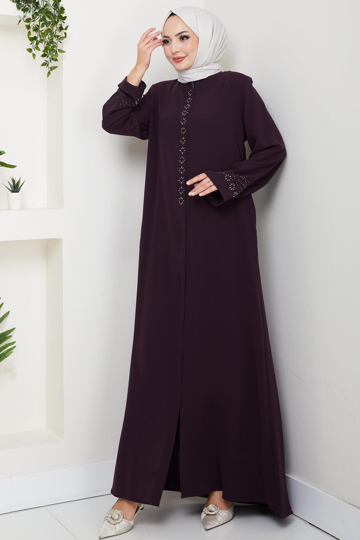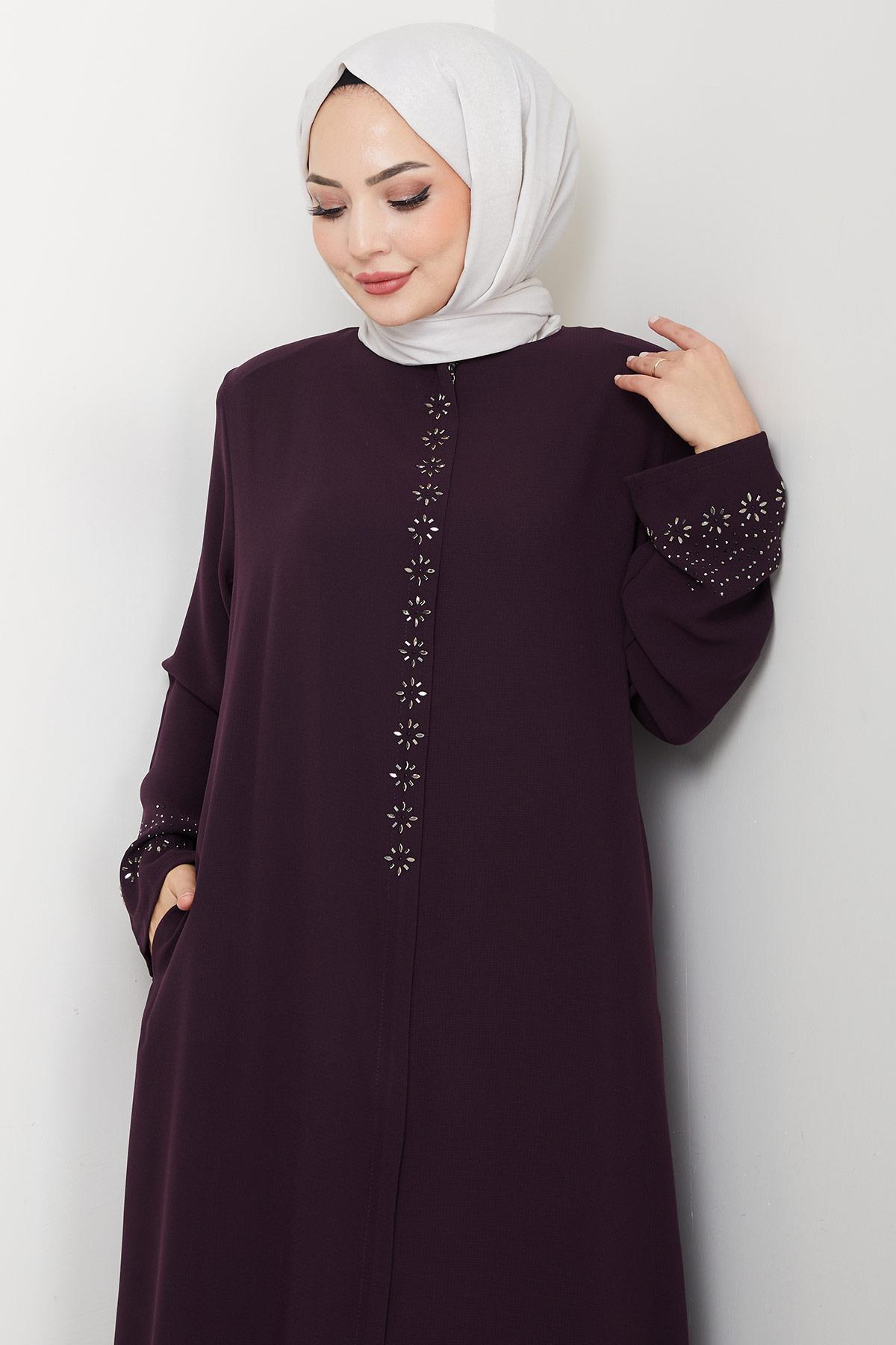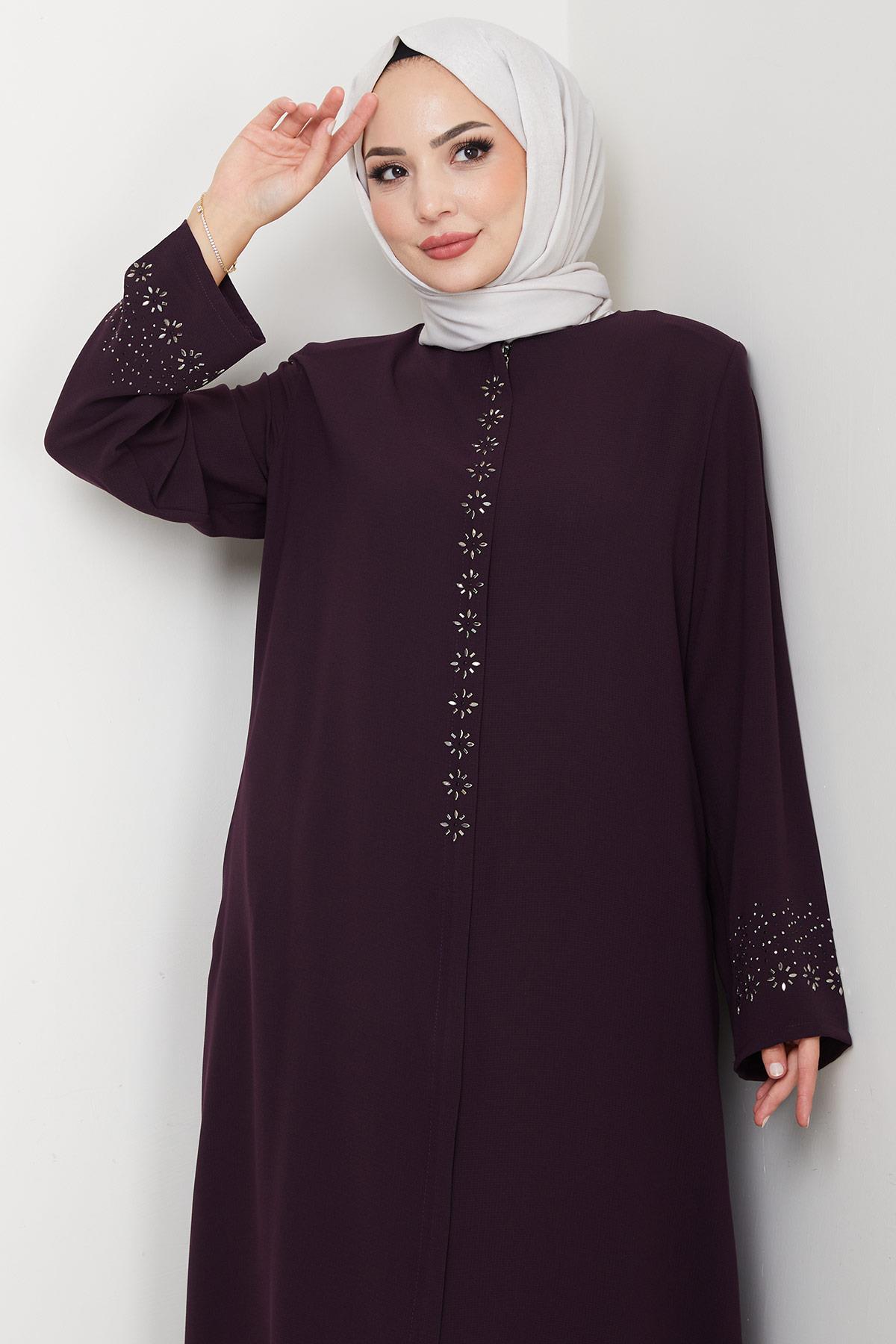 Ürün Özelliği : Bisiklet yaka, boydan fermuarlı, taş detaylı Ferace modelidir. Omuzları vatkalı, yandan cepli, astarsızdır. Ürün renginde konsept çekimlerinden dolayı ton farklılığı olabilir.