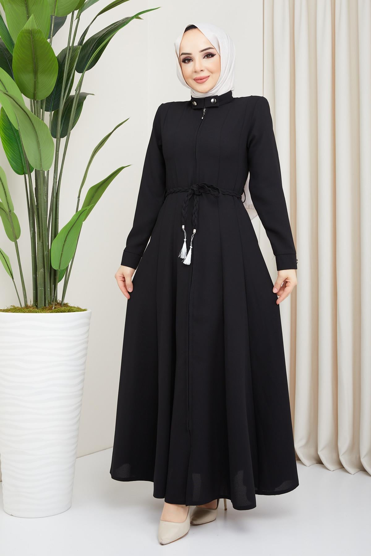 Ürün Özelliği : Yeni sezon Pileli Slim Fit Mevlana Ferace modelidir. Yakasında ve manşetinde düğme detayı bulunmaktadır fermuar ile kapanmaktadır. Üründe iki adet aktif cep bulunmaktadır. Omuzları vatkalıdır. Belinde çıkarılabilir örgü desenli ucu püsküllü bağcığı mevcuttur. Ürün renginde konsept çekimlerinden dolayı ton farklılığı olabilir.
