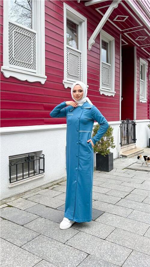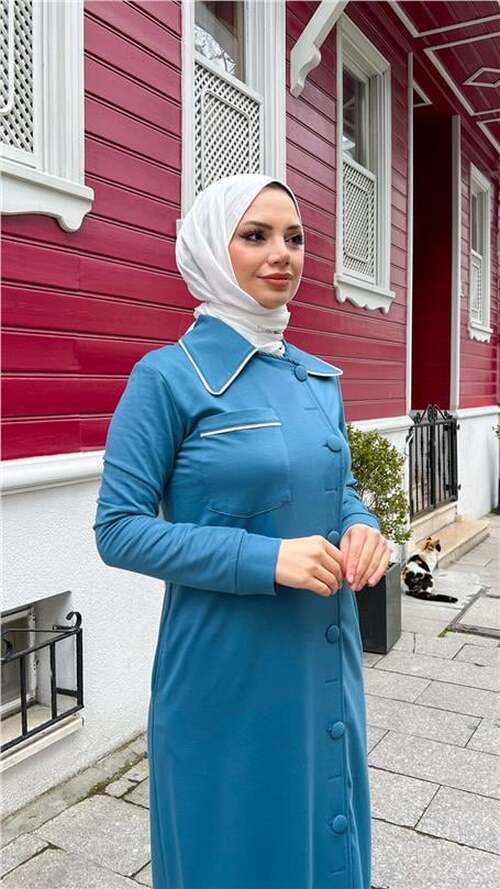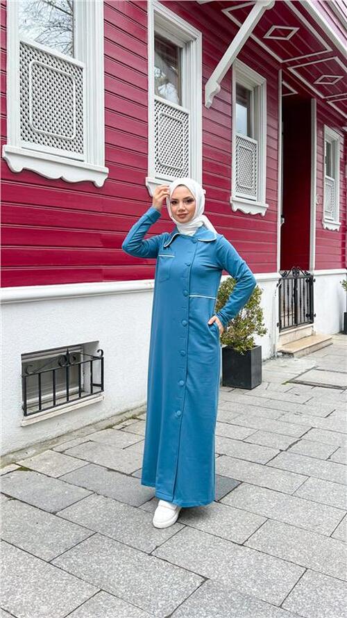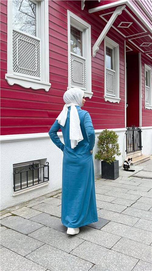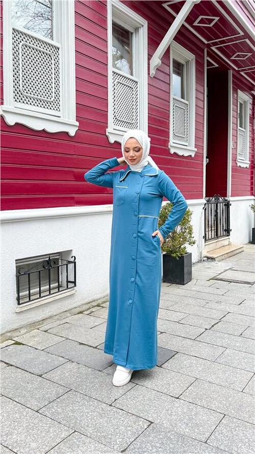 STOK ADI : - Yakalı Cepli Yandan Düğmeli Pamuklu Uzun Ferace