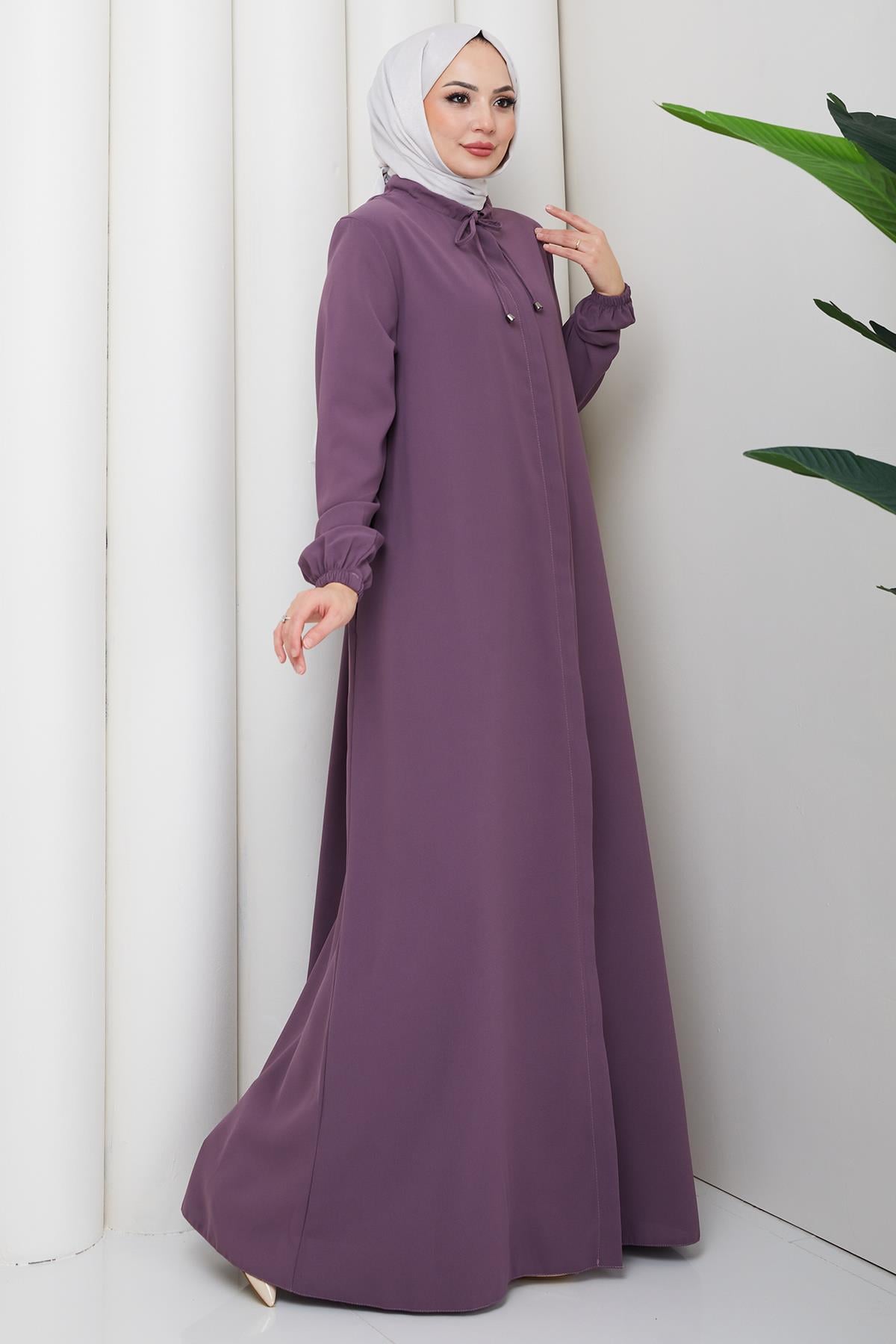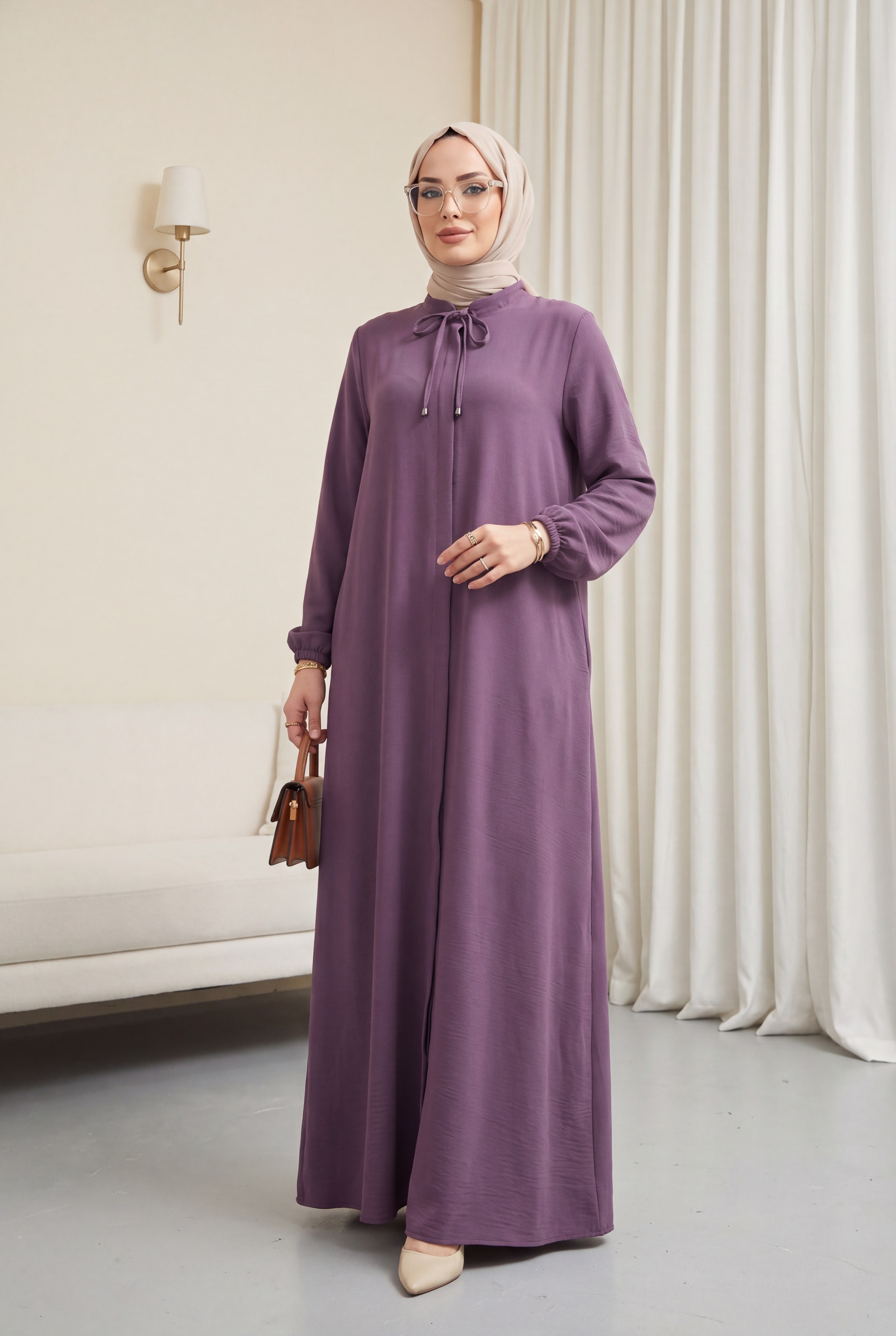 Yakası Bağcık Detaylı Büyük Beden Ferace Gül Kurusu HM2868 Özellikleri