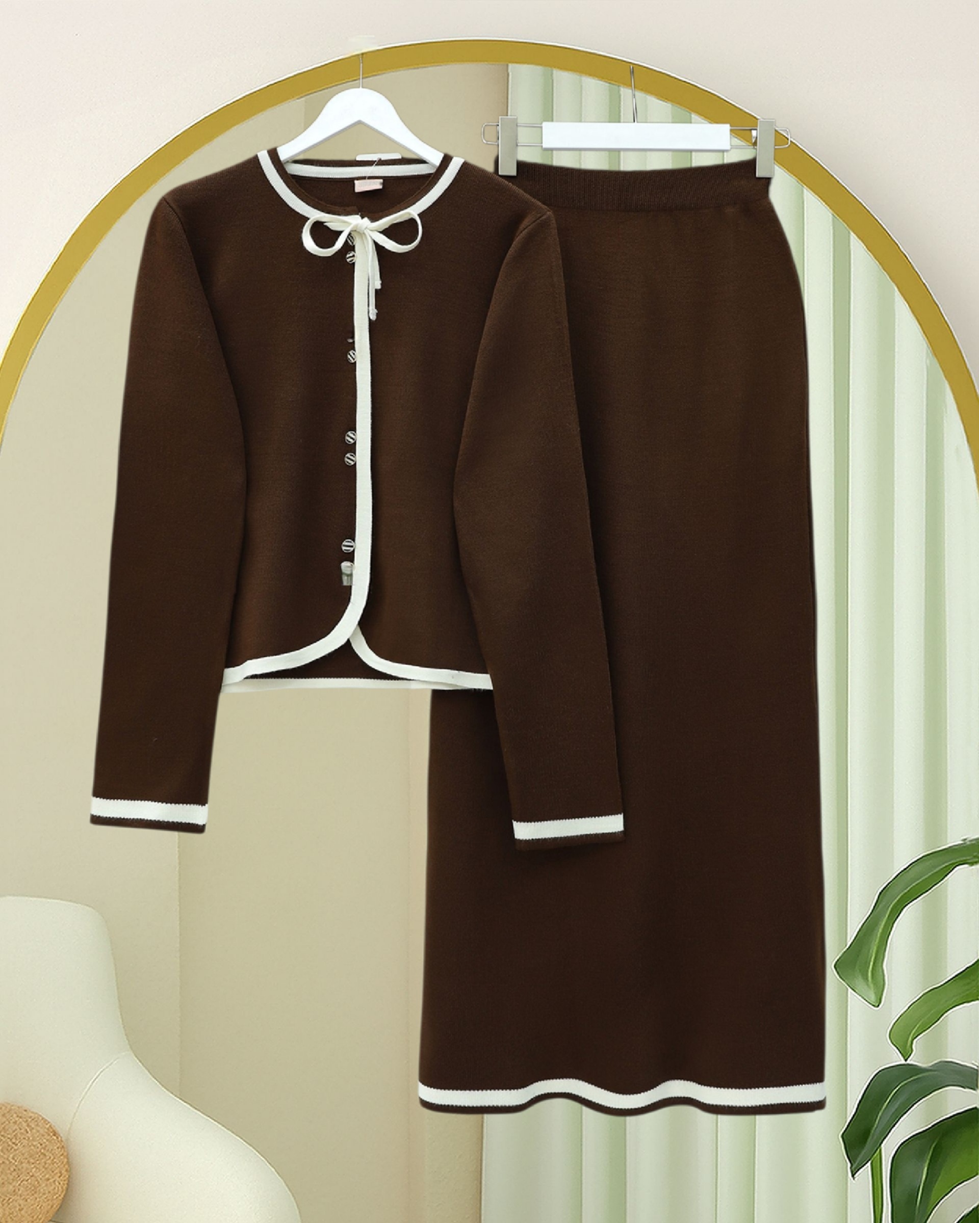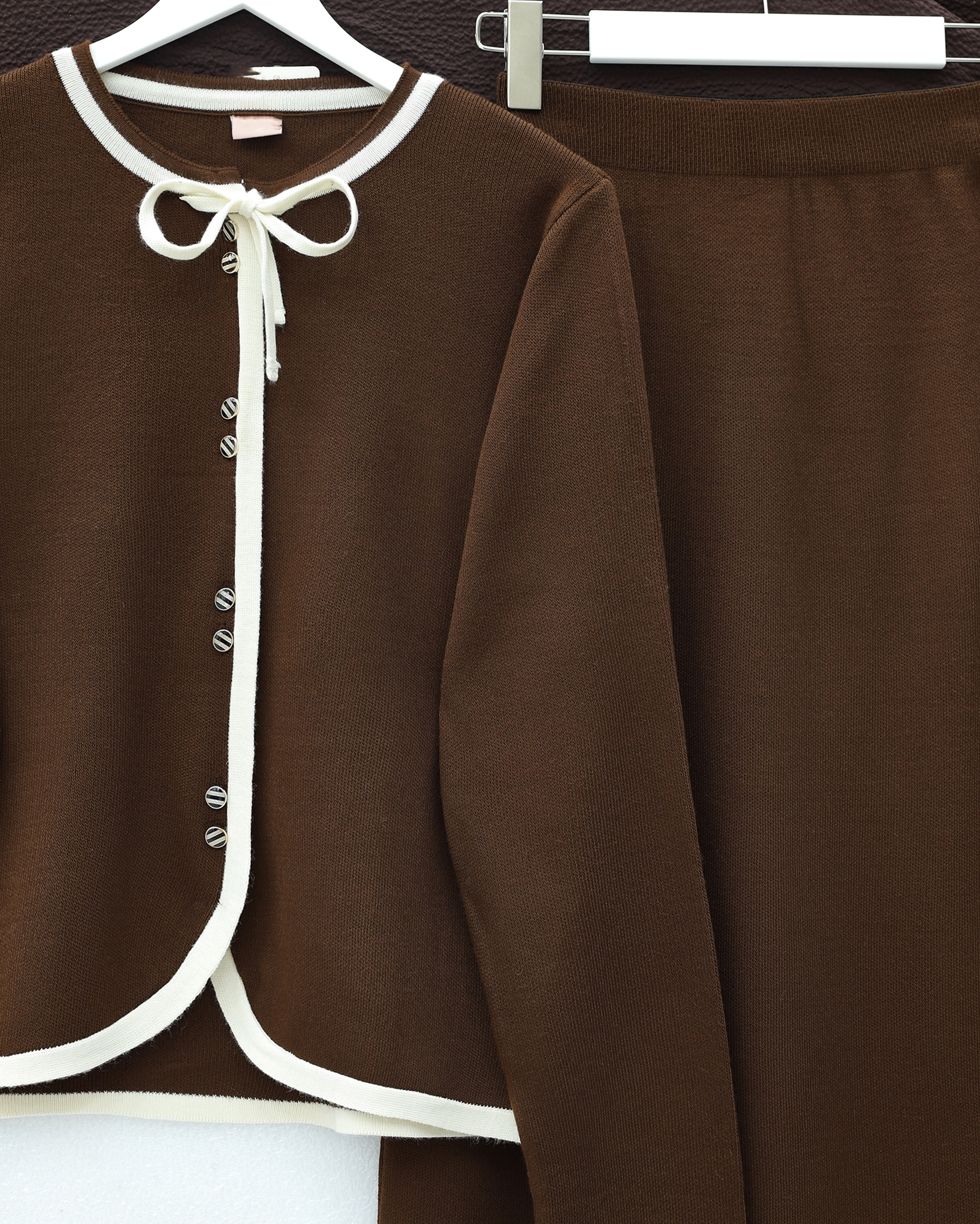 Modern şıklığı konforla bir araya getiren Bağcık Detaylı Şeritli Düğmeli Etekli Triko Takım, zarif duruşu ve triko dokusunun sıcak hissiyle günlük ve özel kombinlerde şık bir alternatif sunar. Üst kısmındaki bağcık detayları spor-şık bir çizgi oluştururken, etek bölümündeki düğmeli tasarım takıma modern bir dokunuş kazandırır. Yanlardaki şerit detayları ise silueti daha uzun ve ince gösterir.