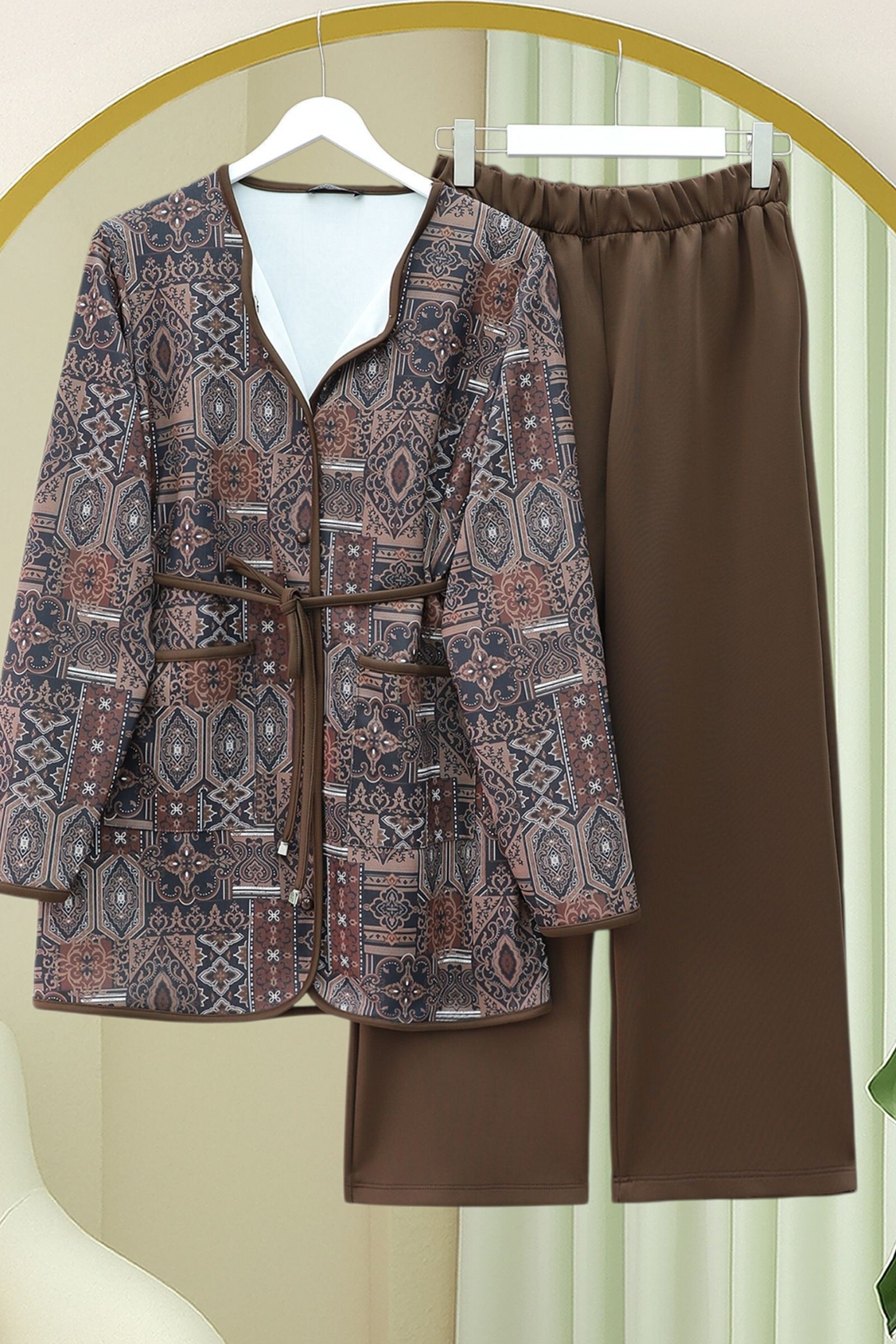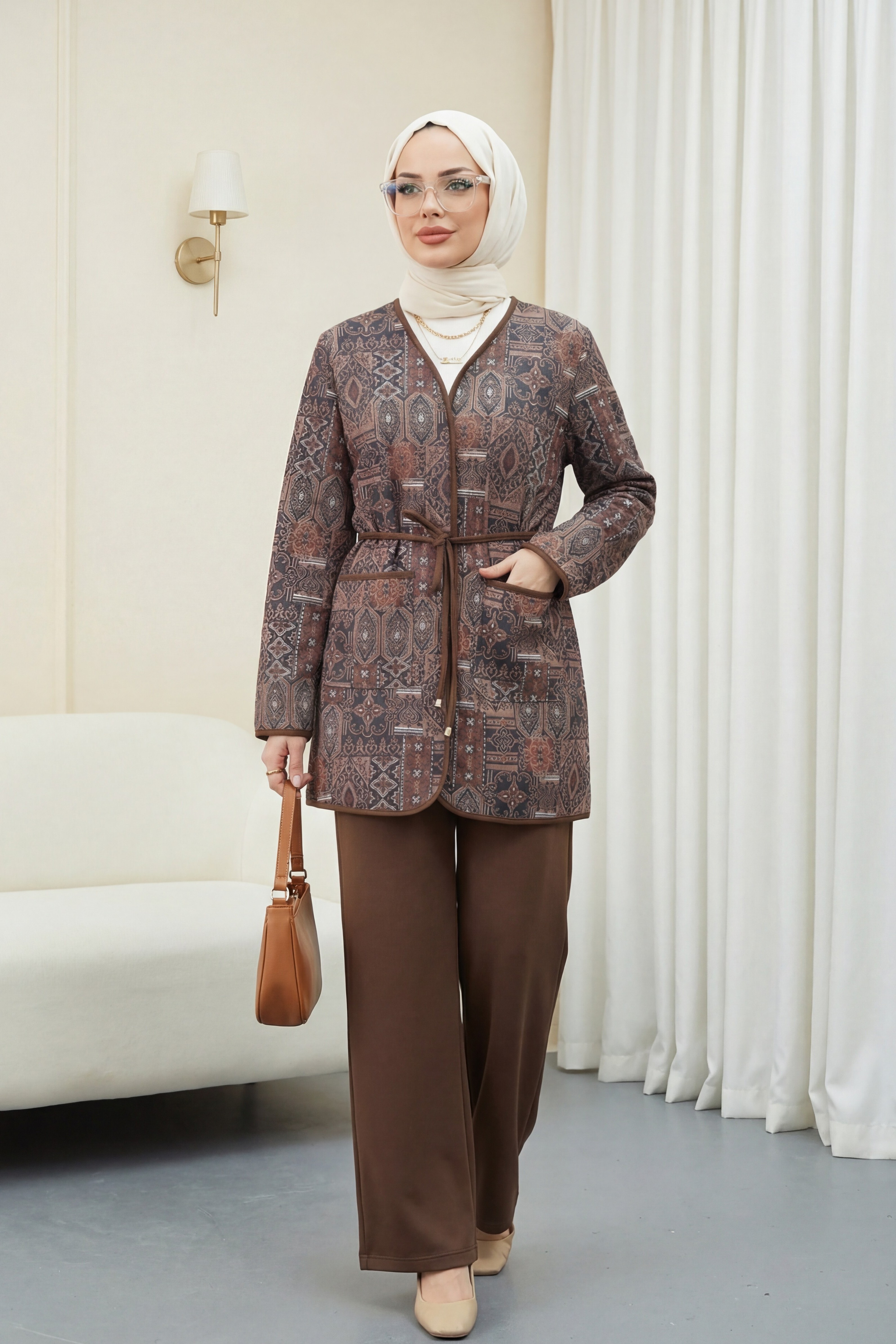 Modern çizgisi, konforlu kalıbı ve dikkat çekici deseniyle öne çıkan Beli Bağlamalı Çift Cepli Desenli Scuba Takım, şıklığı ve rahatlığı bir arada isteyen kadınlar için kusursuz bir kombin alternatifidir. Scuba kumaşın kendine özgü tok ve kaliteli yapısı, takımın formunu koruyarak gün boyu düzgün bir duruş sağlar. Esnek, nefes alabilen ve kırışmaya karşı dayanıklı yapısıyla hem günlük hayatta hem de ofis kombinlerinde rahatlıkla tercih edilebilir.