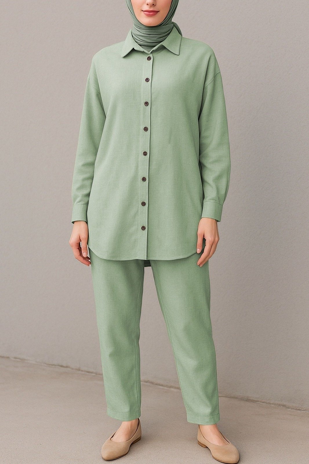 Yaz aylarının vazgeçilmezi Boydan Düğmeli Pantolon Gömlek Keten Takım, hafif keten kumaşıyla serin tutar ve şıklığınızı tamamlar. Hem günlük hayatta hem de özel anlarda stilinizi ön plana çıkarır. Konfor ve zarafeti bir arada arayanlar için mükemmel bir seçenek!