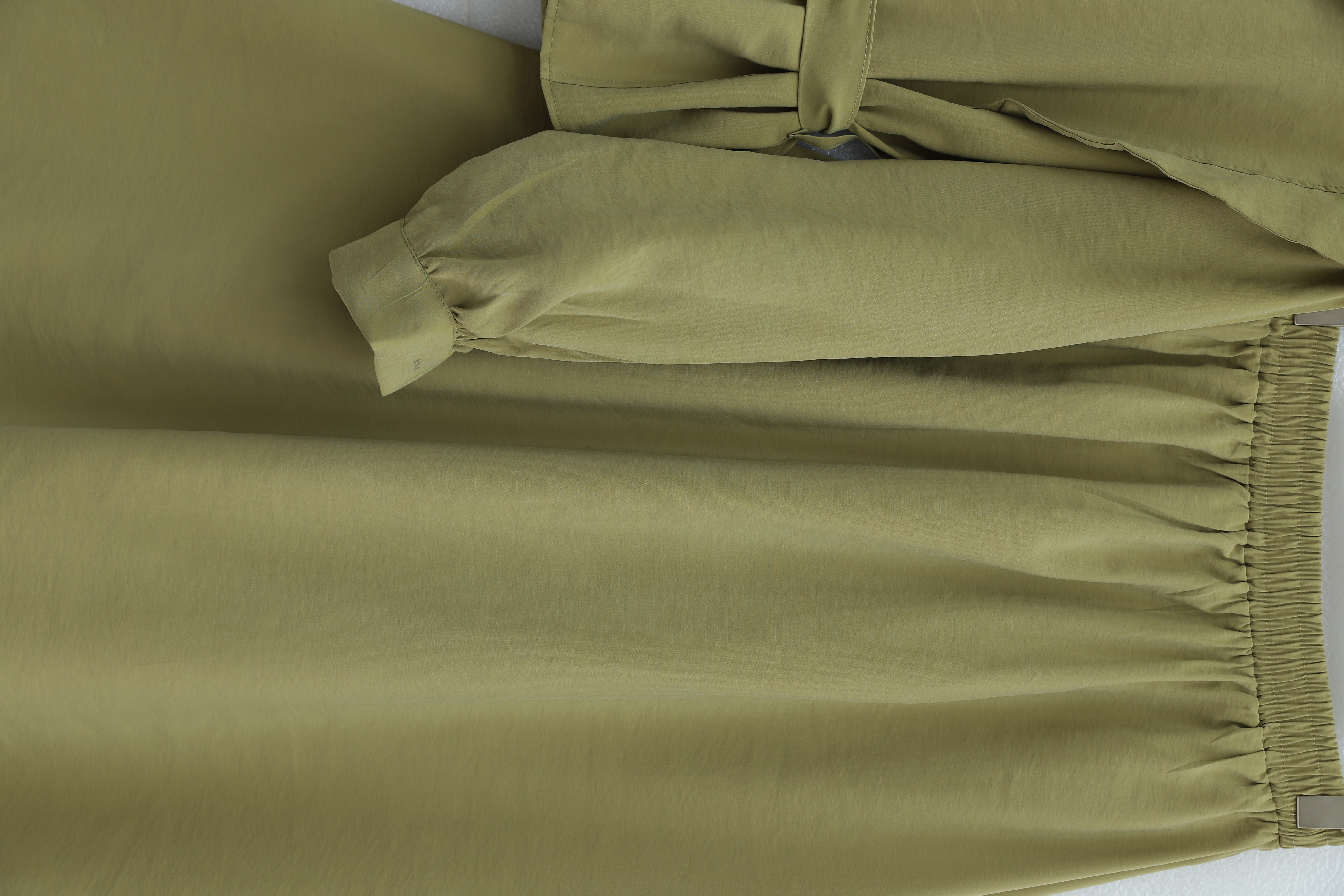 Omzu Vatka Detaylı Kemerli Eteği Lastikli Modal Takım -Yağ Yeşili