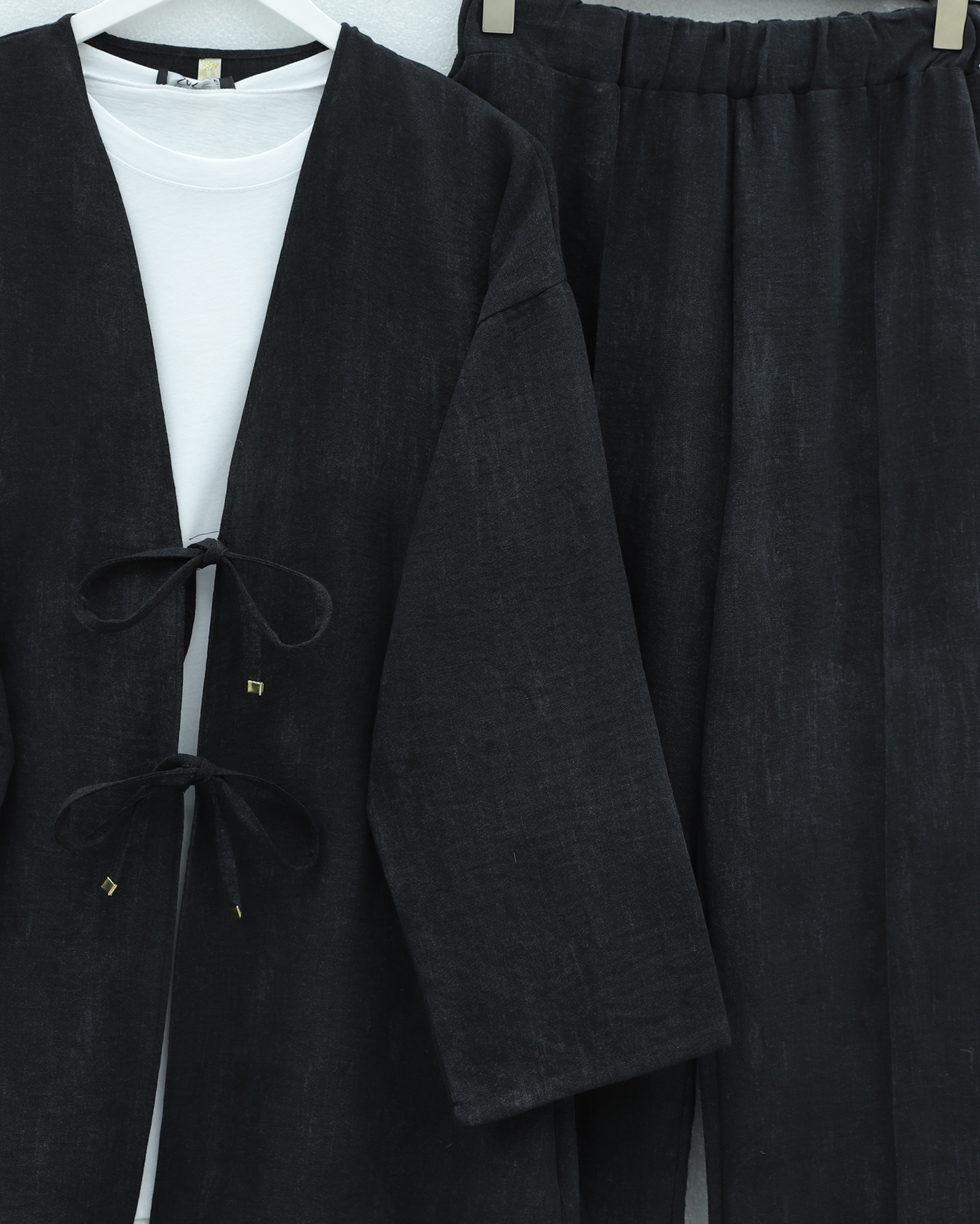 “Keten kimono takım”, “pantolonlu keten takım”, “bağlamalı kadın takım”, “yazlık keten takım” gibi adlandırılabilir.