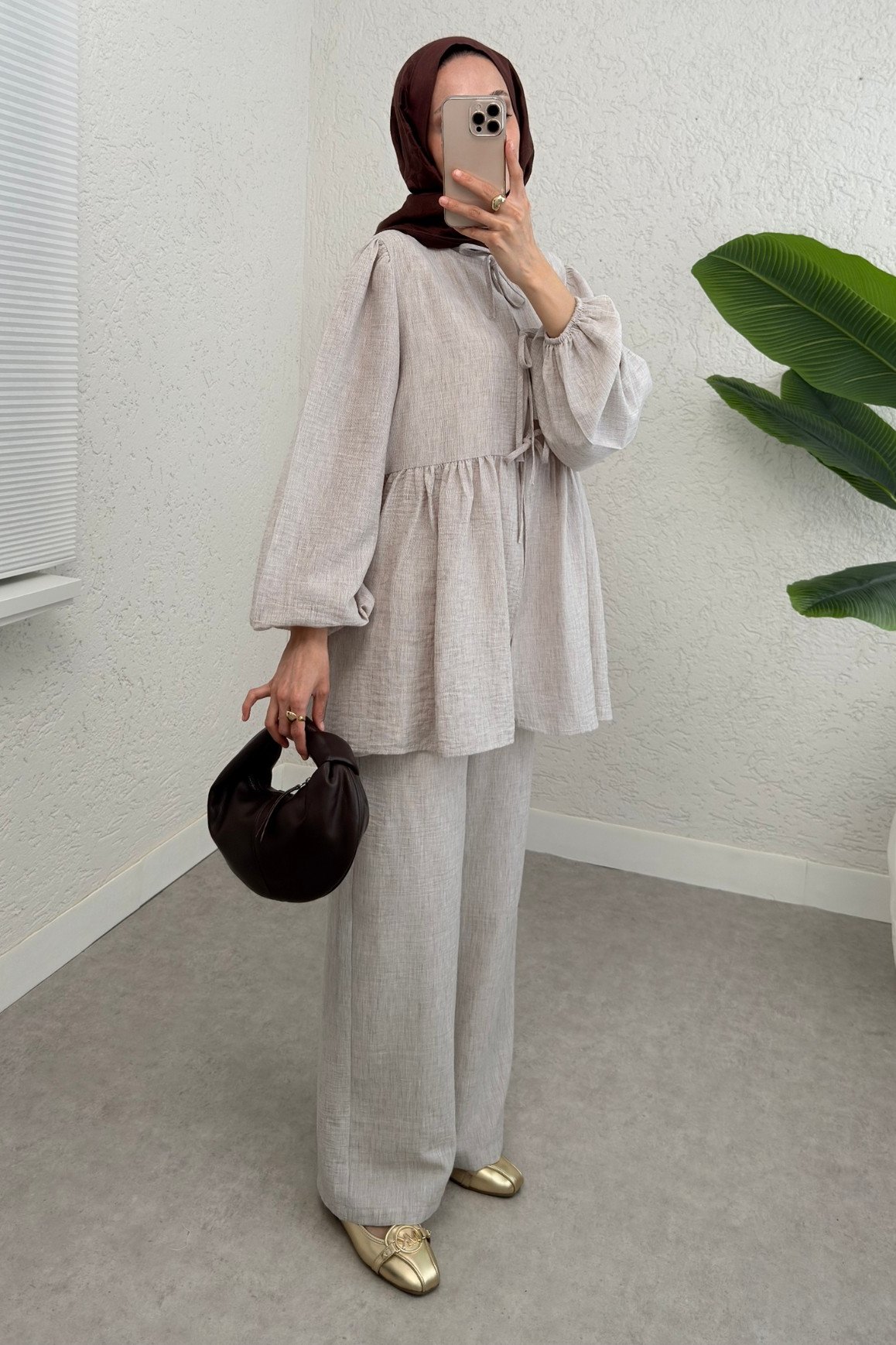 Önü bağlamalı tasarımı ve parçalı detaylarıyla dikkat çeken bu kolu lastikli takım, modern şıklığı ve rahatlığı bir arada sunar. Günlük şıklığınızdan özel davetlere kadar her anınızı tamamlayan bu takım, her gardırobun vazgeçilmezi olacak!