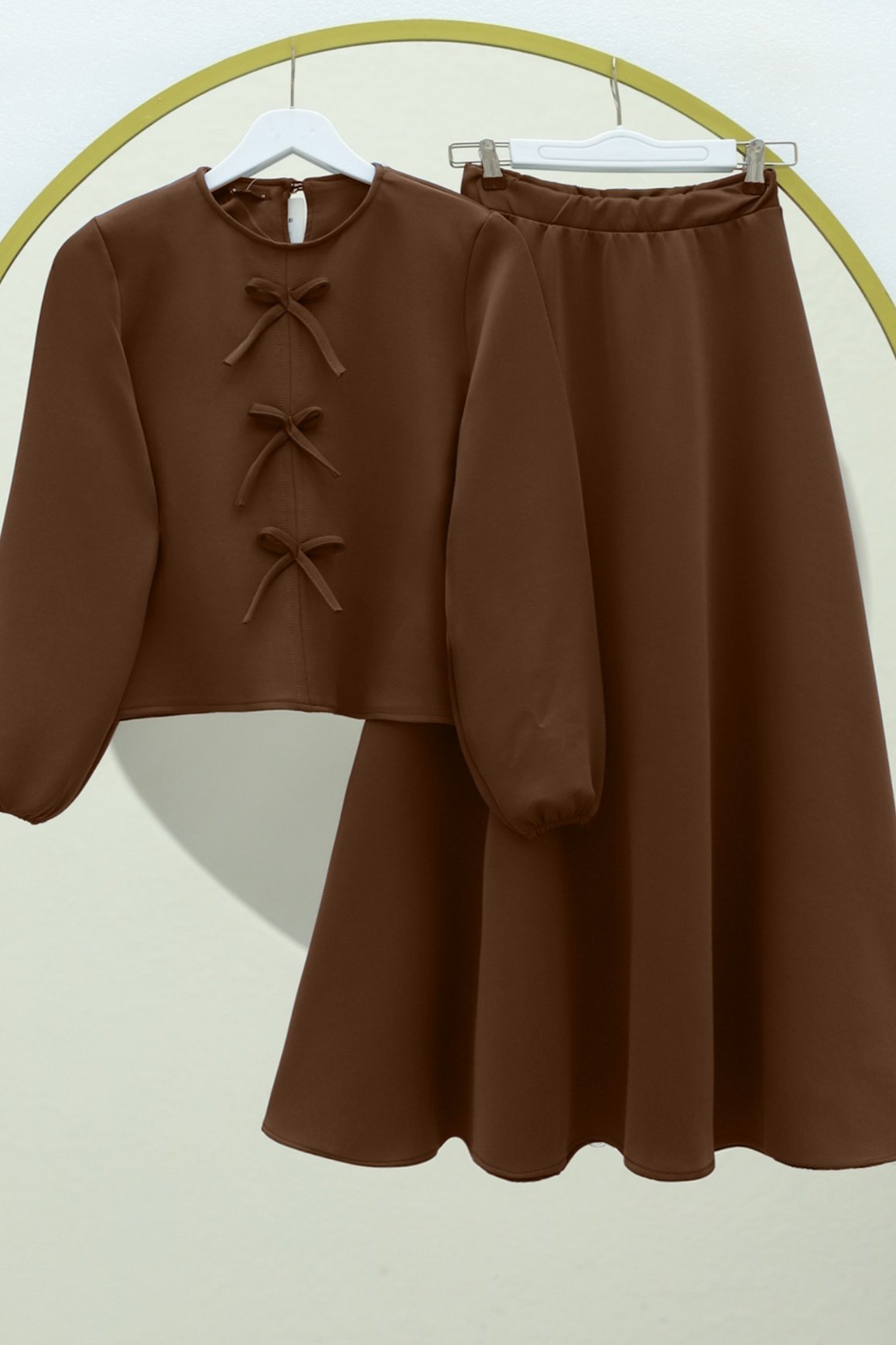 Önü Fiyonk Detaylı Etekli Scuba Takım, şıklığı ve zarafeti bir arada sunan mükemmel bir seçimdir. Fiyonk detayı, takıma feminen bir hava katarak, stilinizi zarif bir şekilde tamamlar. Scuba kumaşı, vücuda oturan kesimiyle rahatlık ve şıklığı birleştirirken, etek kısmı modern ve dinamik bir görünüm sağlar. Hem günlük kullanımlar hem de özel davetlerde tercih edilebilecek bu takım, zarif ve pratik bir stil arayanlar için ideal bir tercihtir.