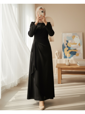 Püskül Detaylı İnci Düğmeli Etekli Takım -Siyah - 144-1417-R01