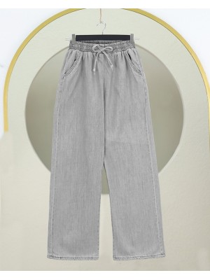 Beli Lastikli Cepli Bol Paça Kot Pantolon -Gri