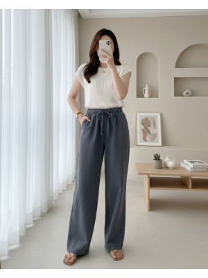 Bol Paça Beli Lastikli Bağcık Detaylı Kot Pantolon -Antrasit