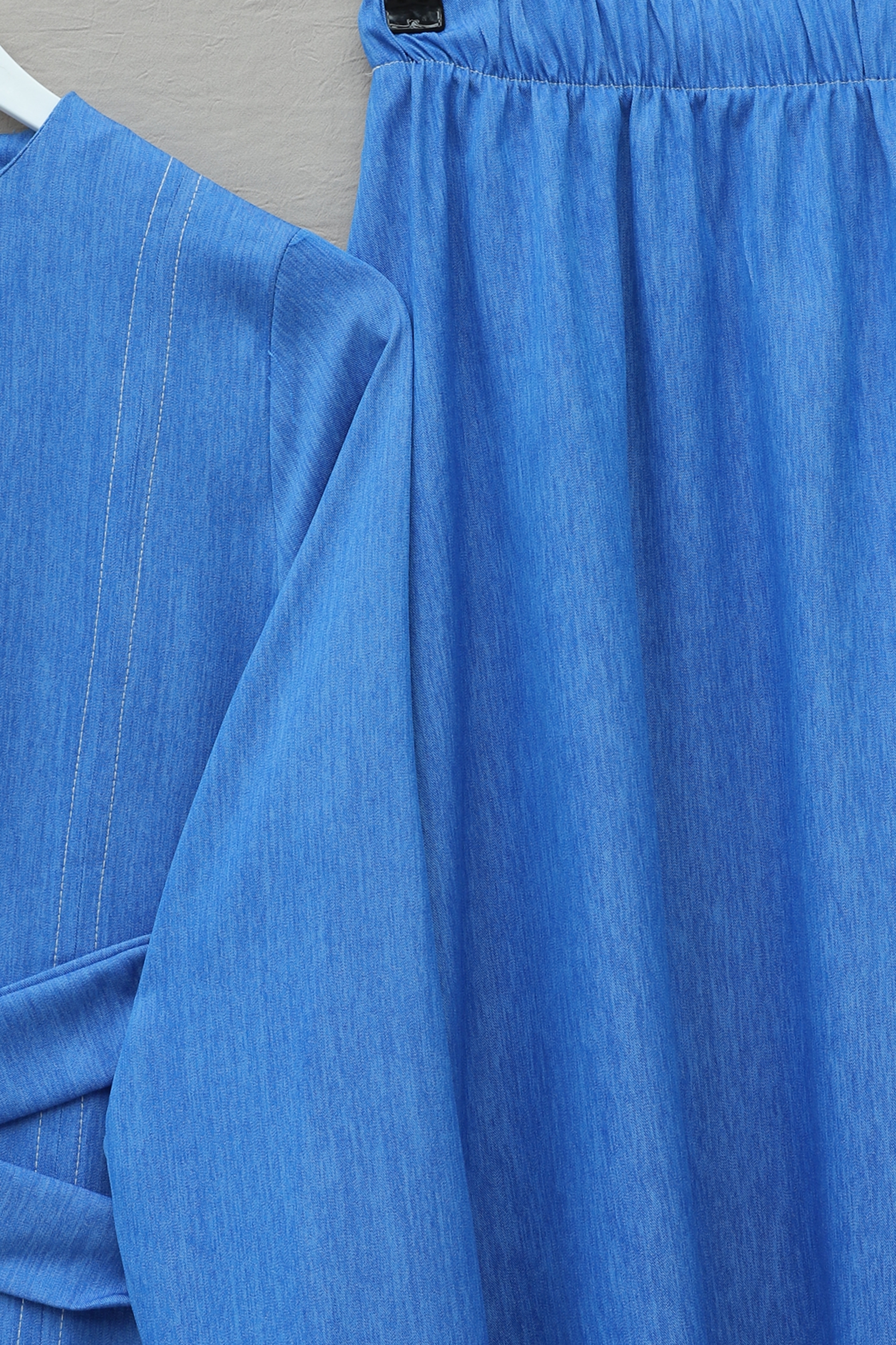 Yuvarlak Yaka Beli Çapraz Bağcıklı Etekli Tensel Takım -Mavi