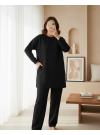 sergiler. Minimal desenlere sahip uzun tunik ve pantolon takımlar hem şıklık