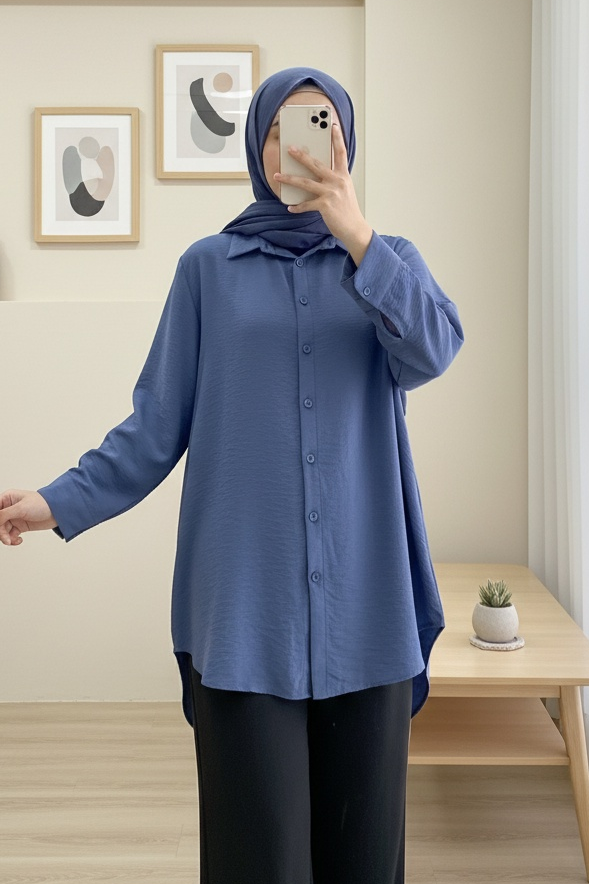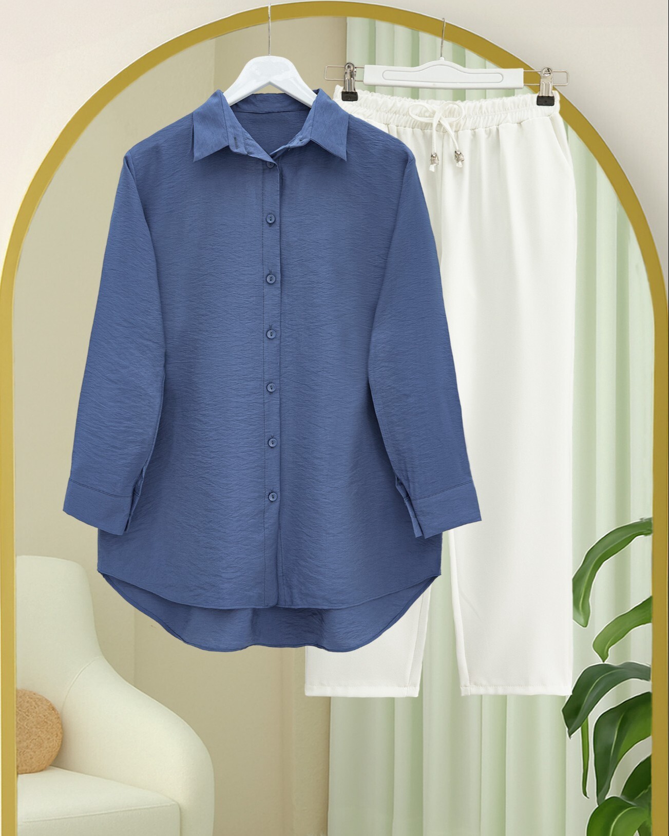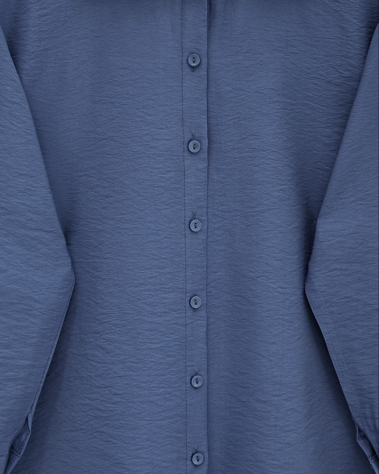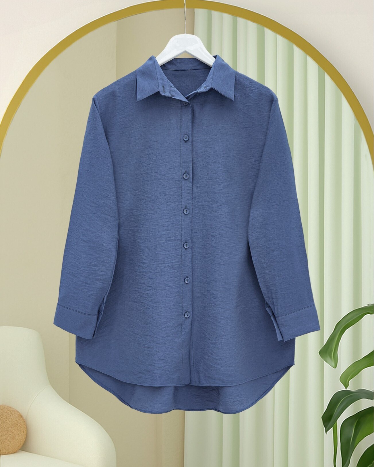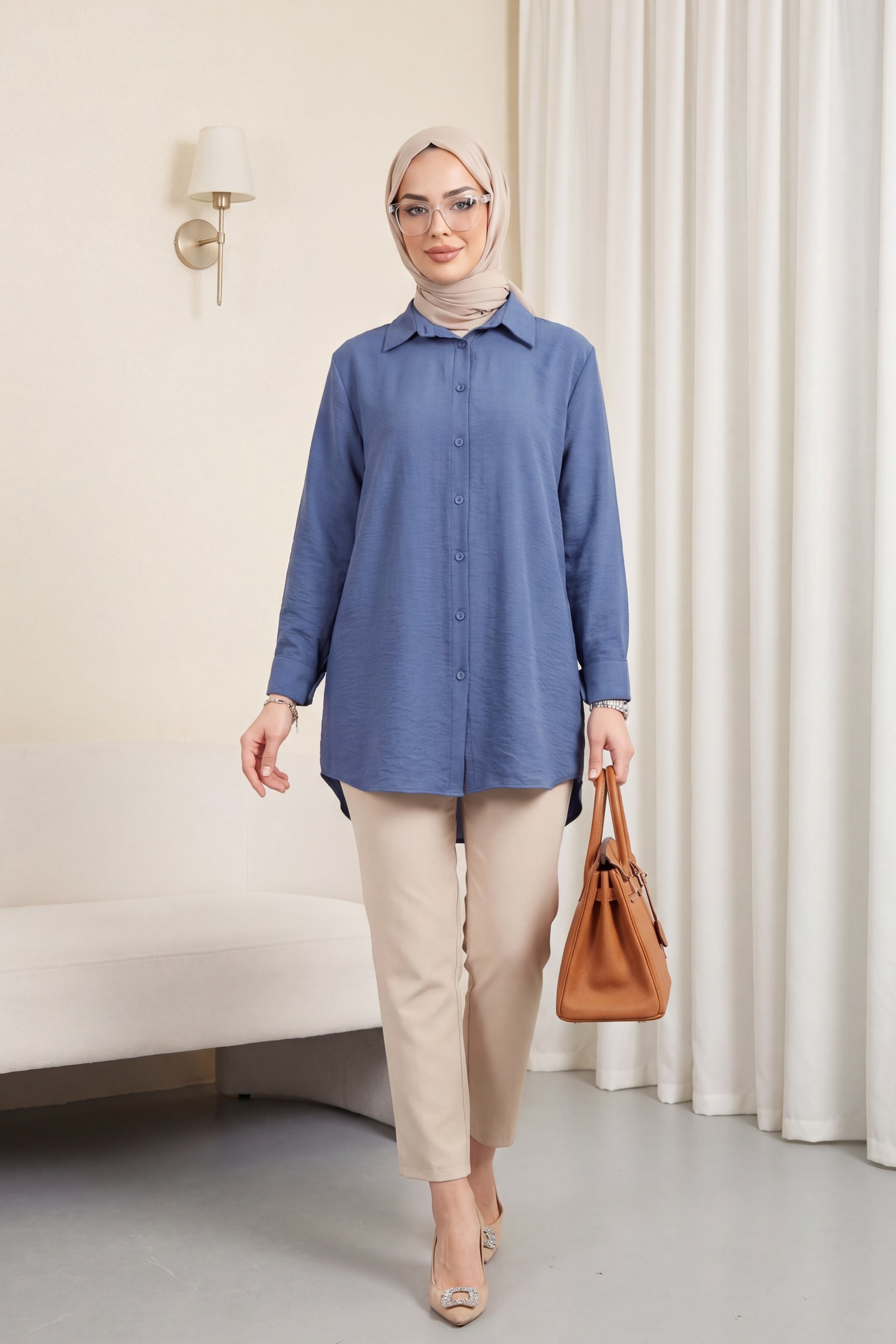 Arkası Uzun Düğmeli Poplin Gömlek -İndigo
