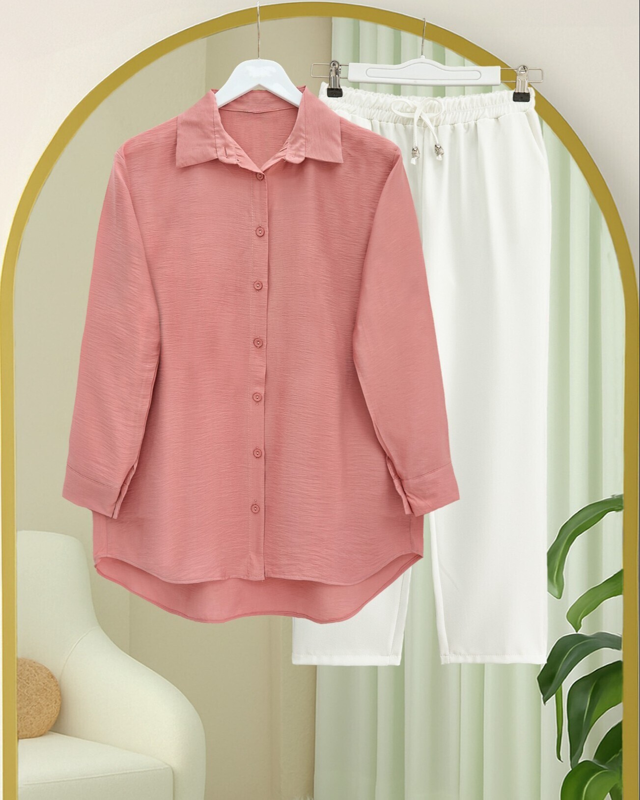 Arkası uzun ve düğme detaylı tasarımıyla modern bir duruş sunan poplin gömlek, hafif yapısıyla gün boyu konfor sağlar. Hem klasik hem şık kombinler için ideal bir parça.