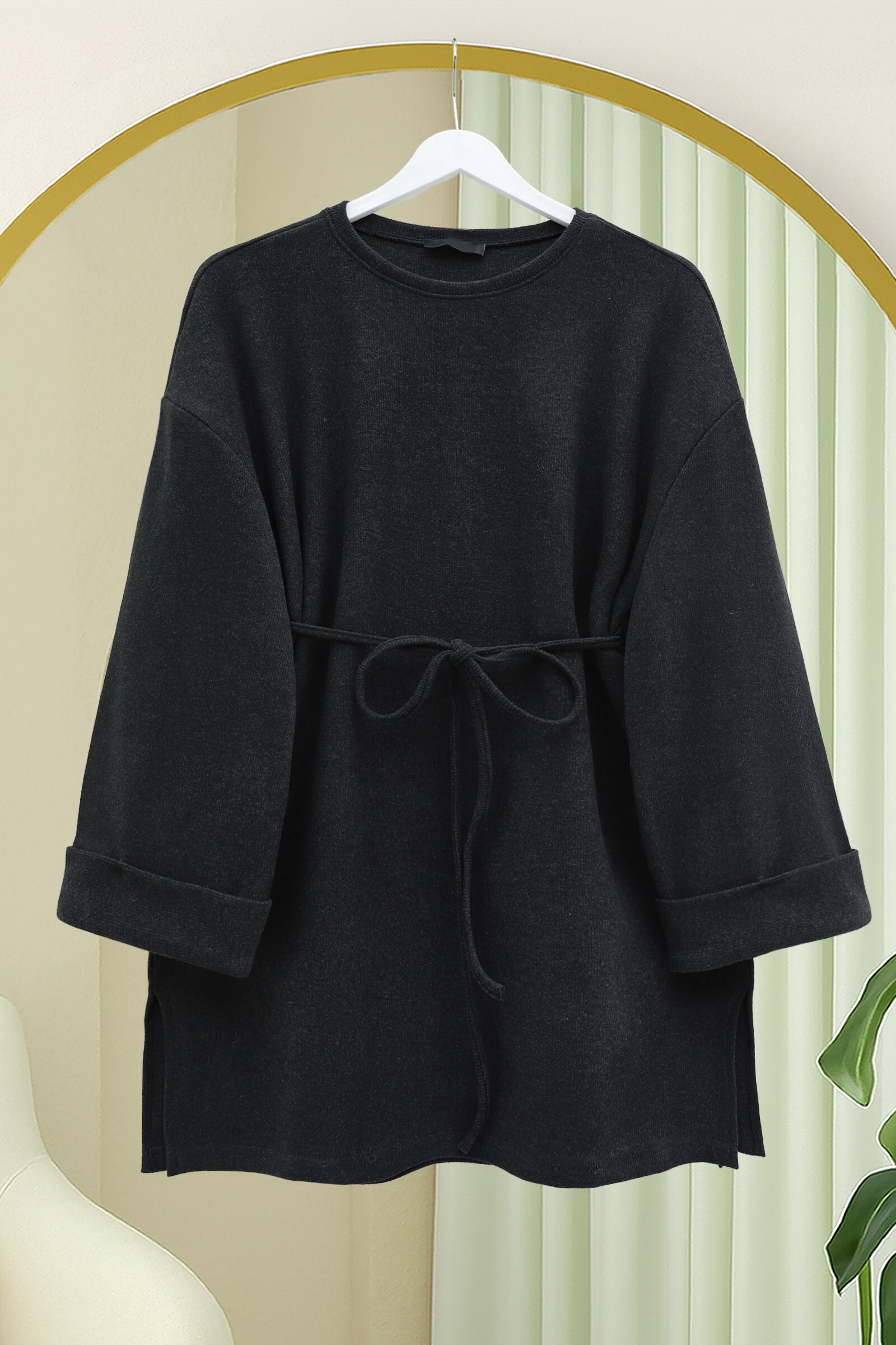 Kolu Katlı Beli Bağlamalı Yırtmaçlı Selanik Tunik, şıklığı ve rahatlığı bir araya getiren modern bir parça. Katlı kol detayı ve beli bağlama özelliği, tunike zarif bir hava katarken, yırtmaçlar da hareket kazandırıyor. Hem günlük hem de şık kombinler için ideal. Rahat ve şık bir stil arayanlar için mükemmel seçim.