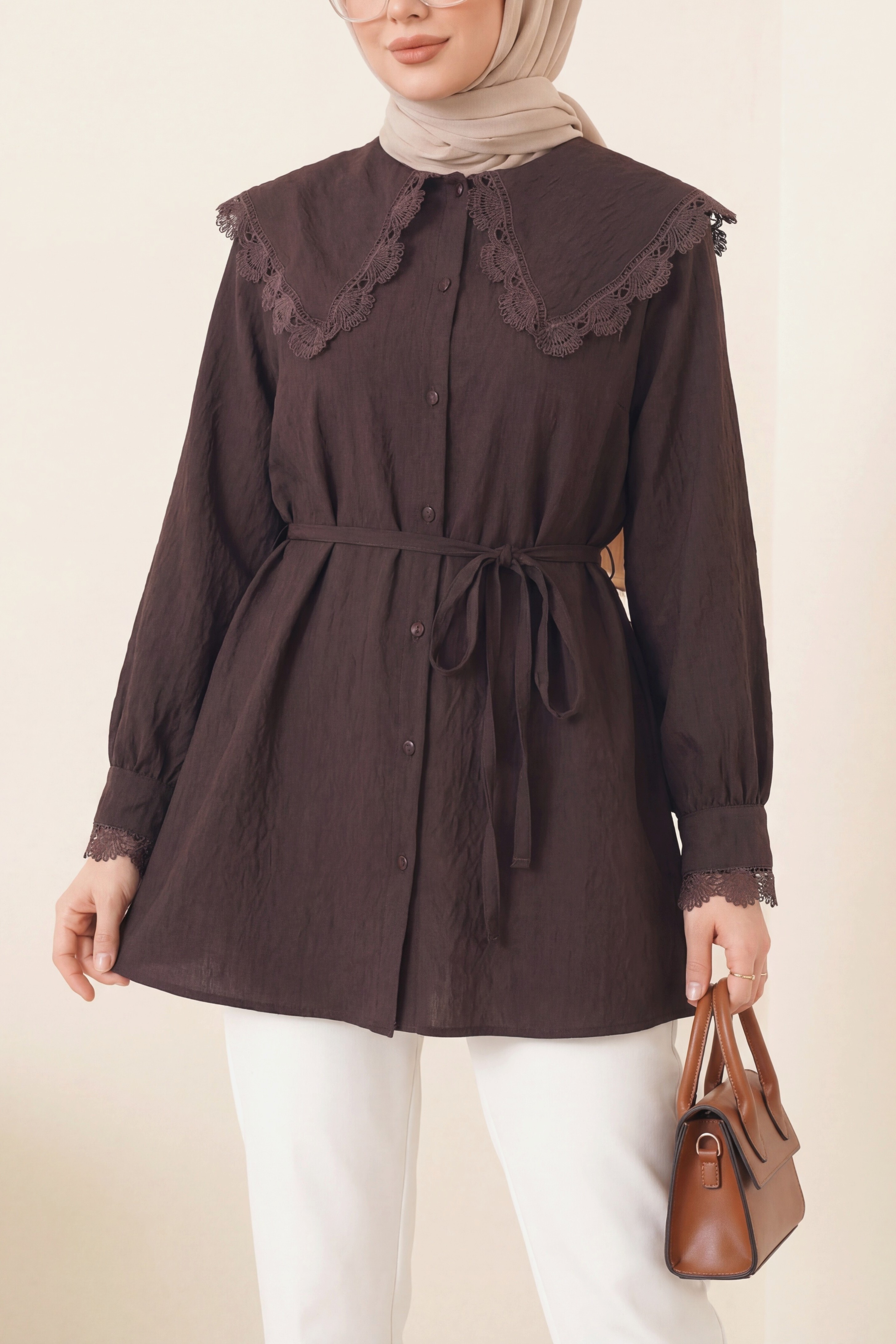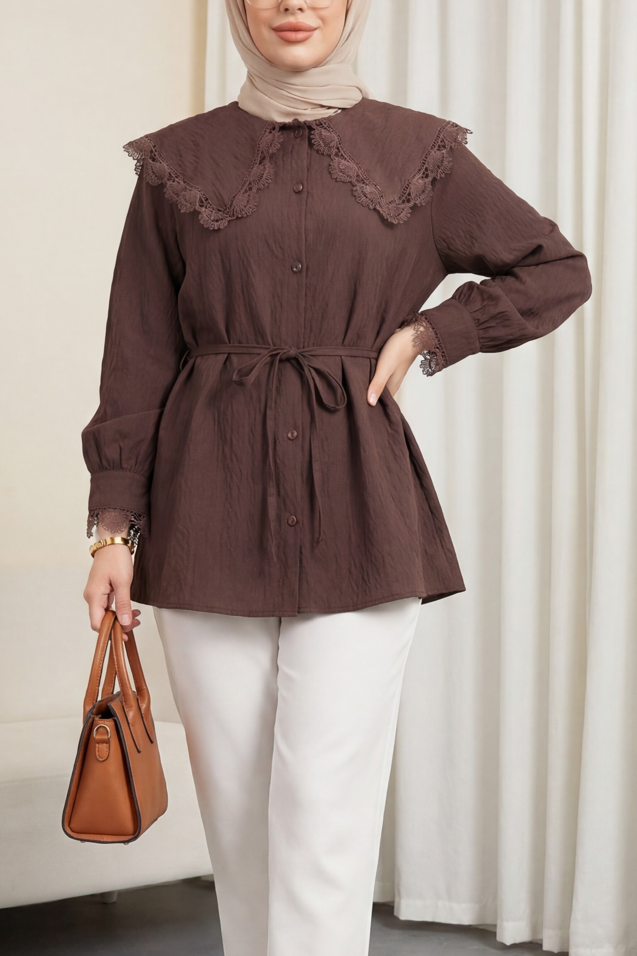 Bebe Yaka Fistolu Beli Bağcıklı Modal Tunik, zarif ve rahat bir stil sunar. Bebe yaka ve fisto detayları feminen bir görünüm kazandırırken, beli bağcıklı formu silueti zarif şekilde vurgular. Modal kumaşı yumuşak ve nefes alabilendir. Günlük ve şık kombinlerde rahatlıkla tercih edilir.