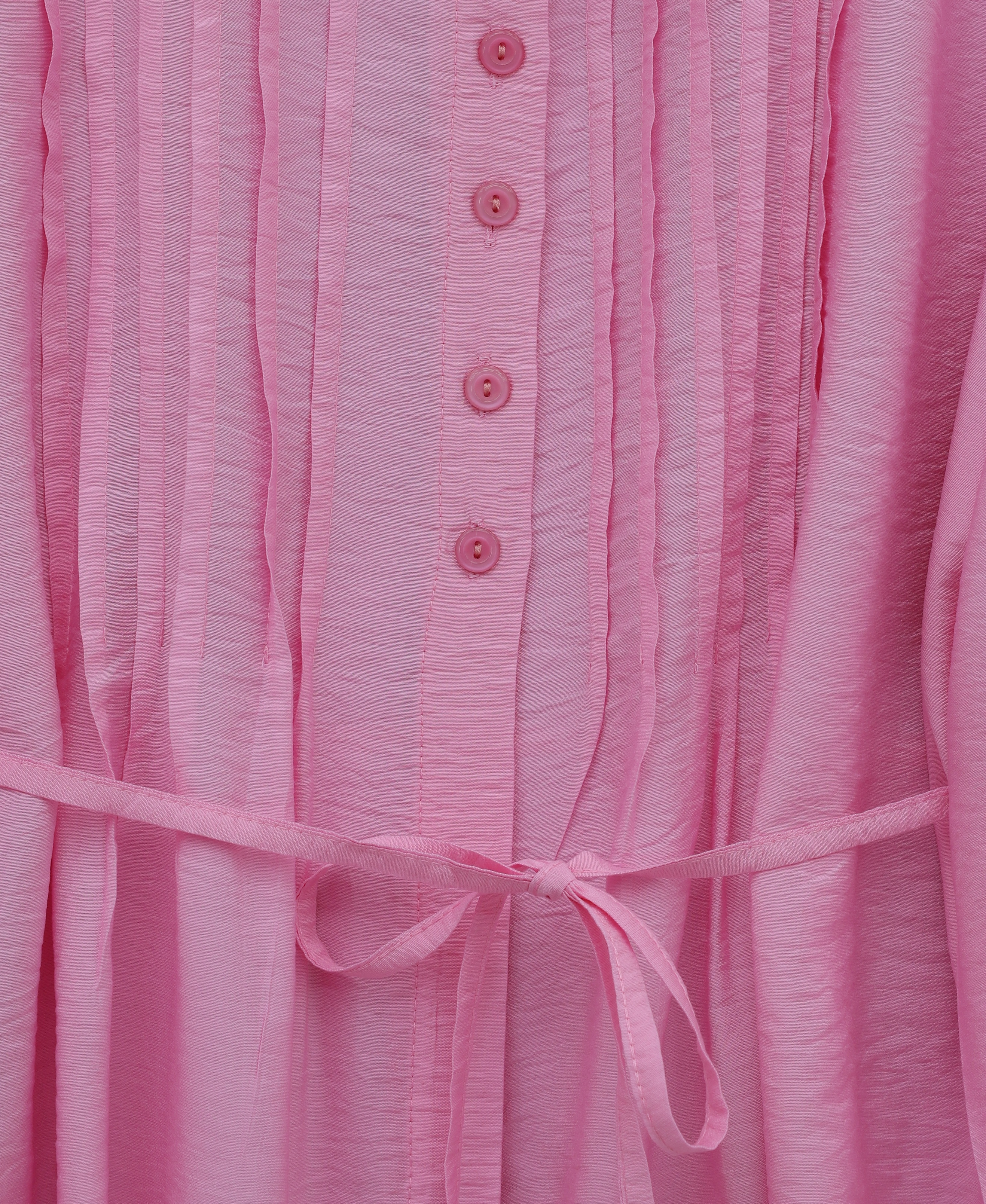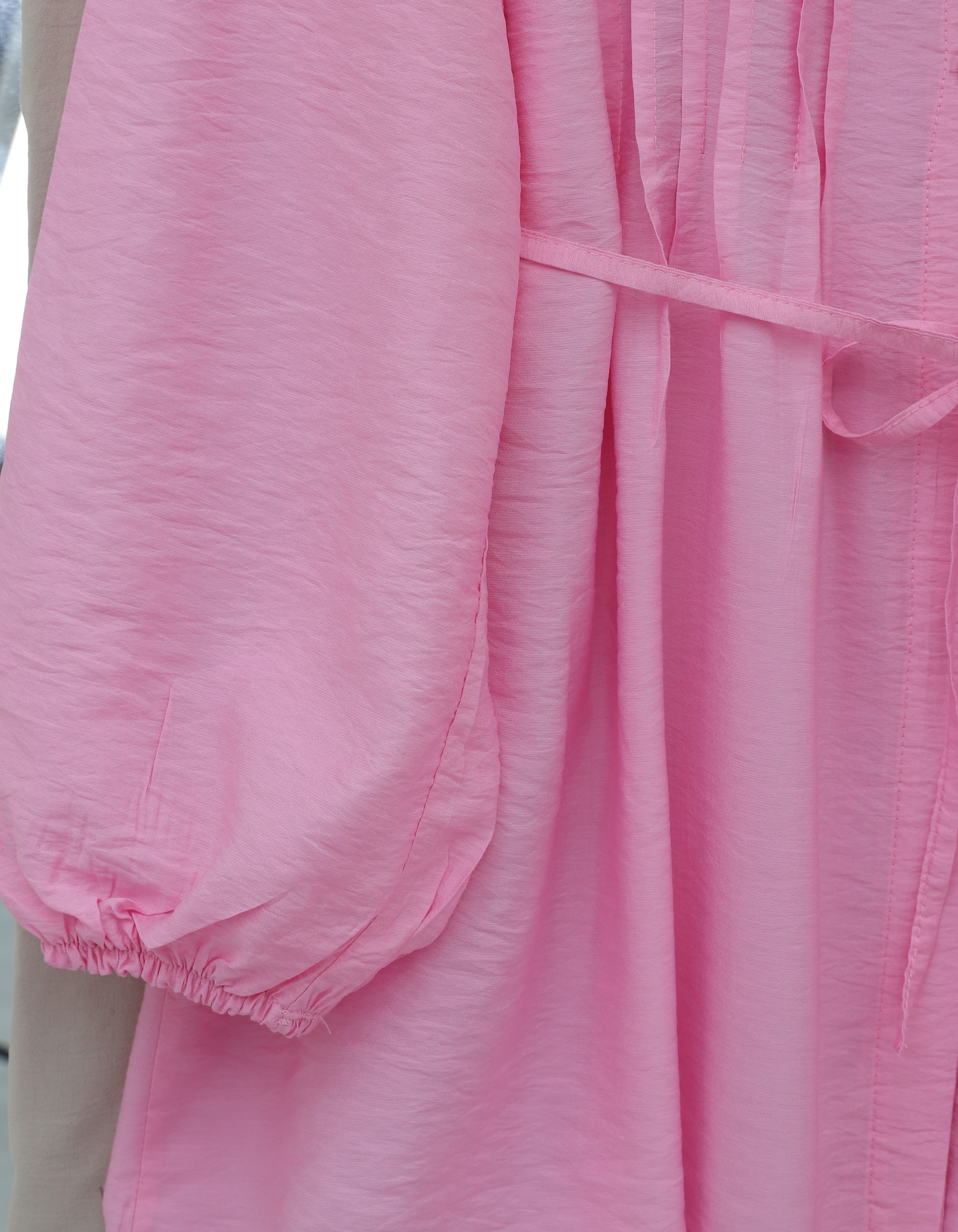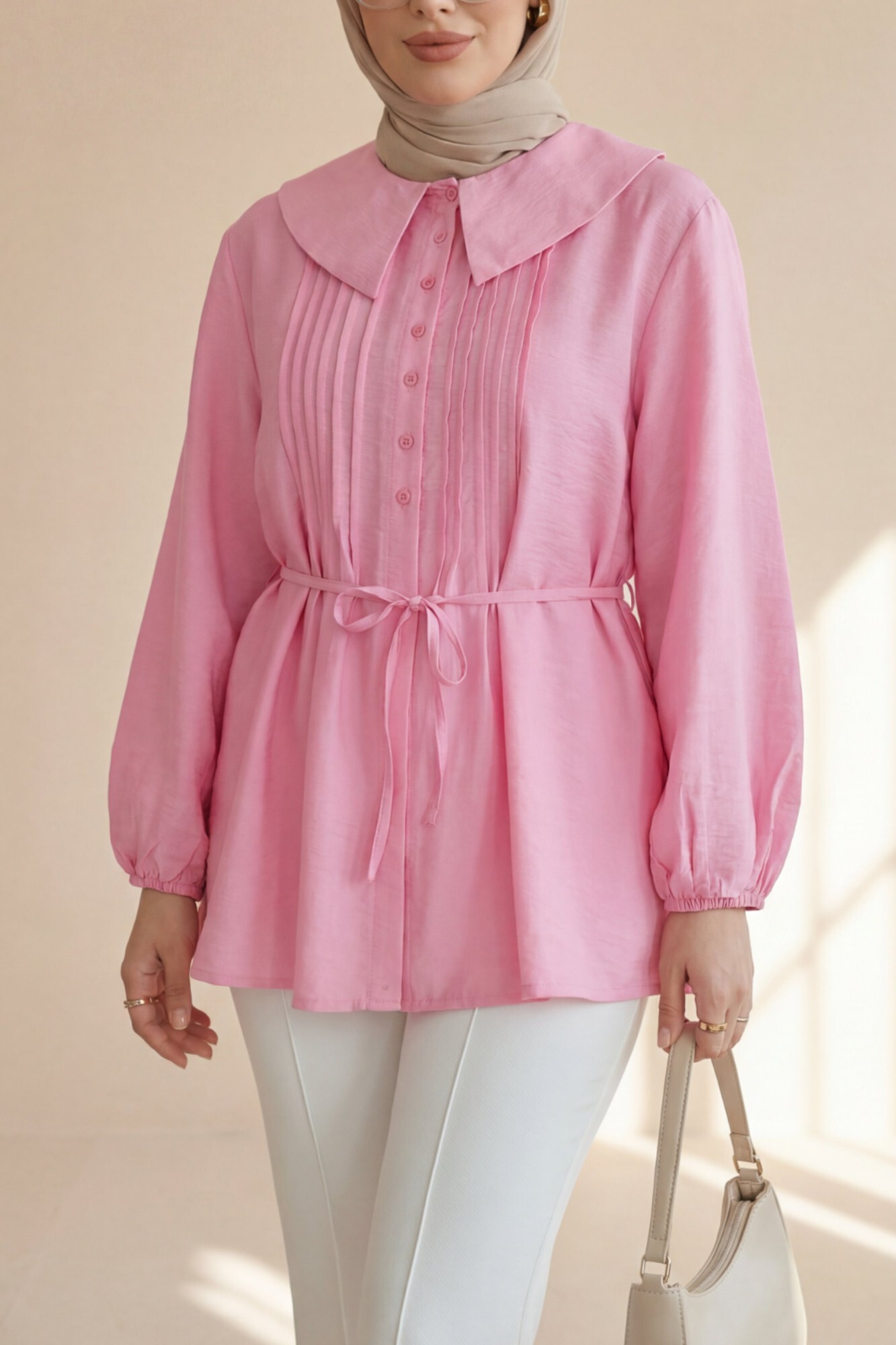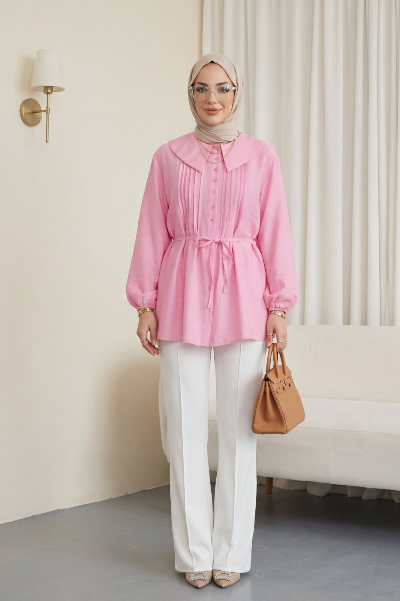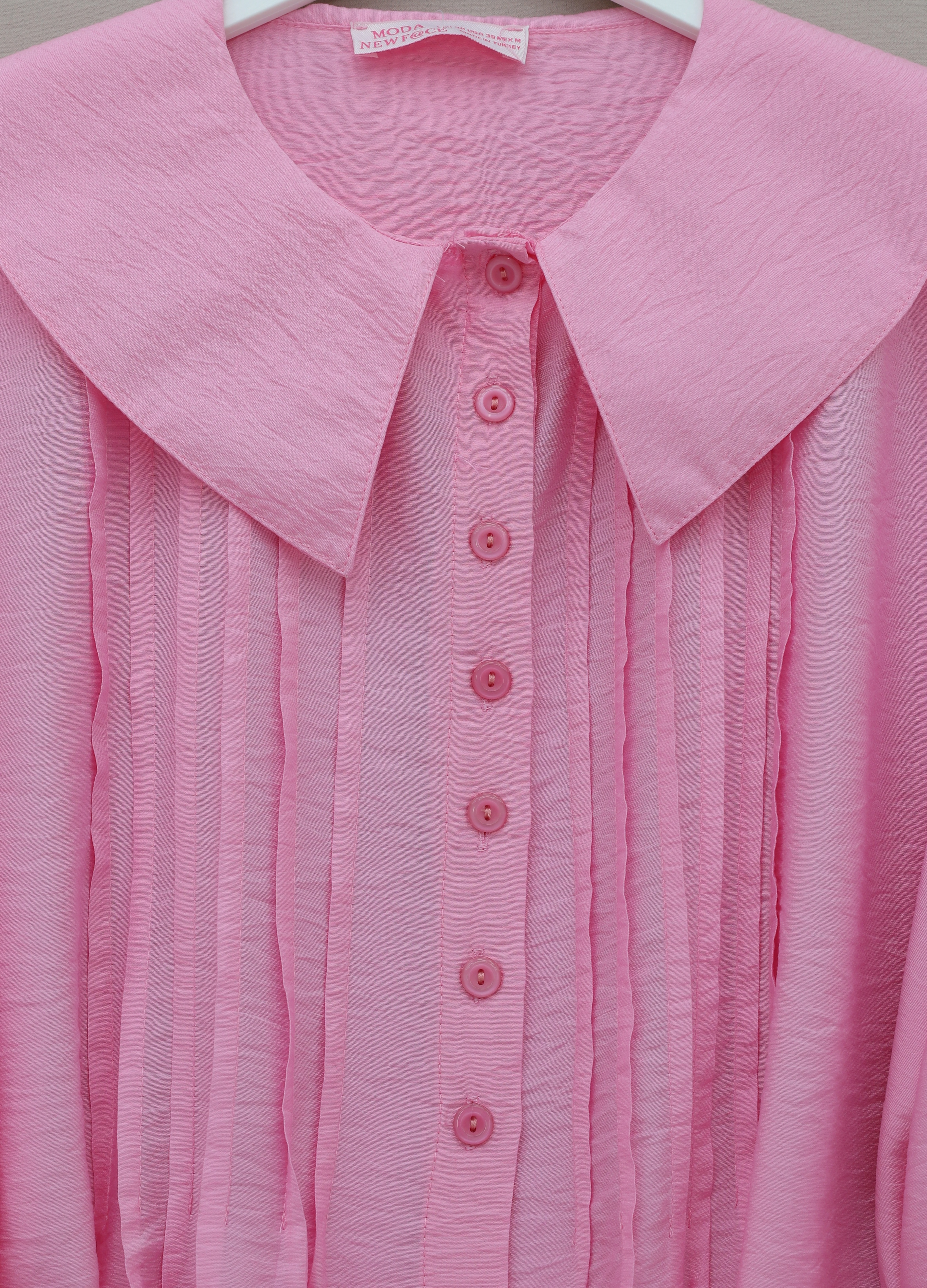 Bebe Yaka Önü Katlama Detaylı Kolu Lastikli Çilek Gömlek -Pembe