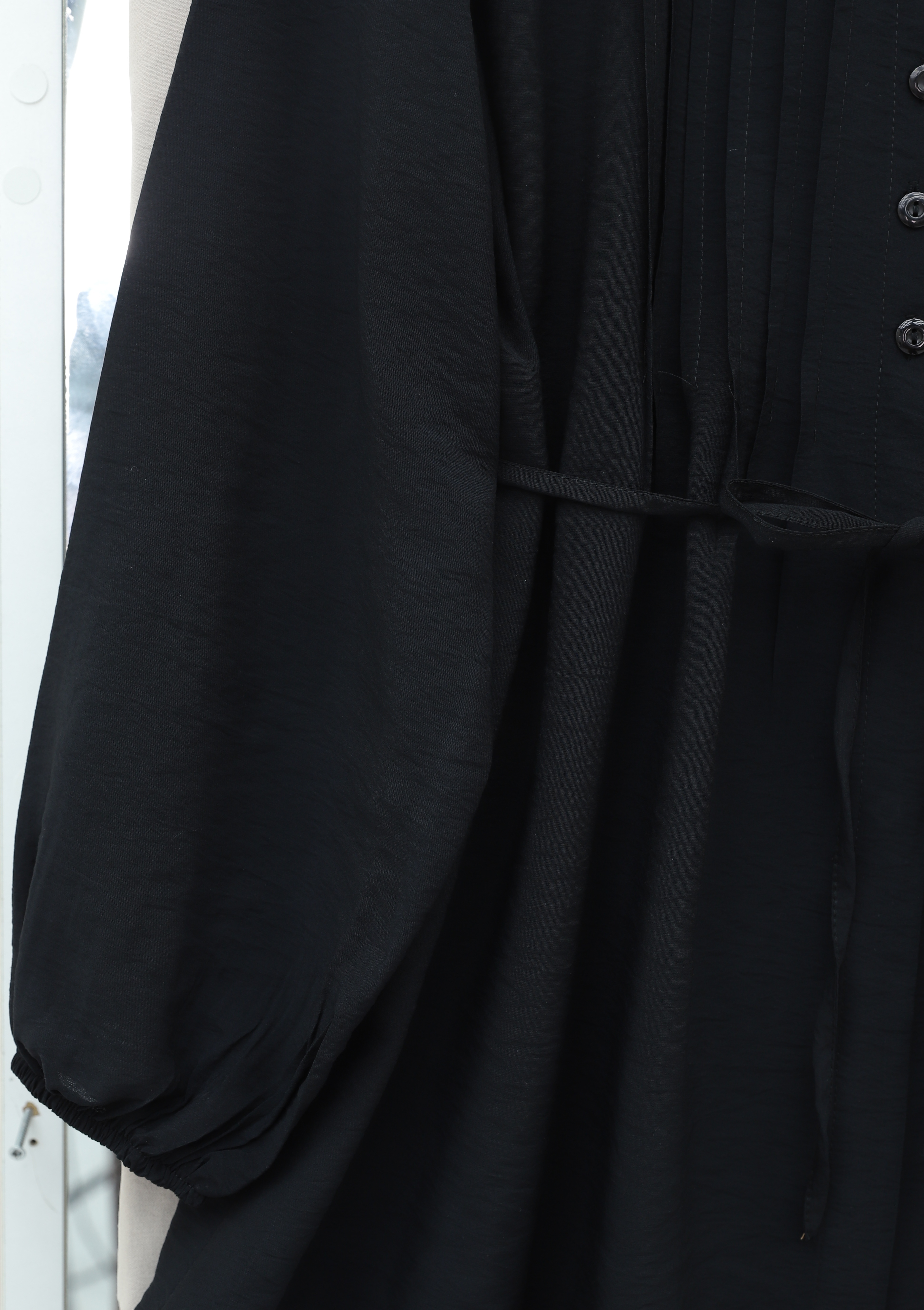 Bebe Yaka Önü Katlama Detaylı Kolu Lastikli Çilek Gömlek -Siyah