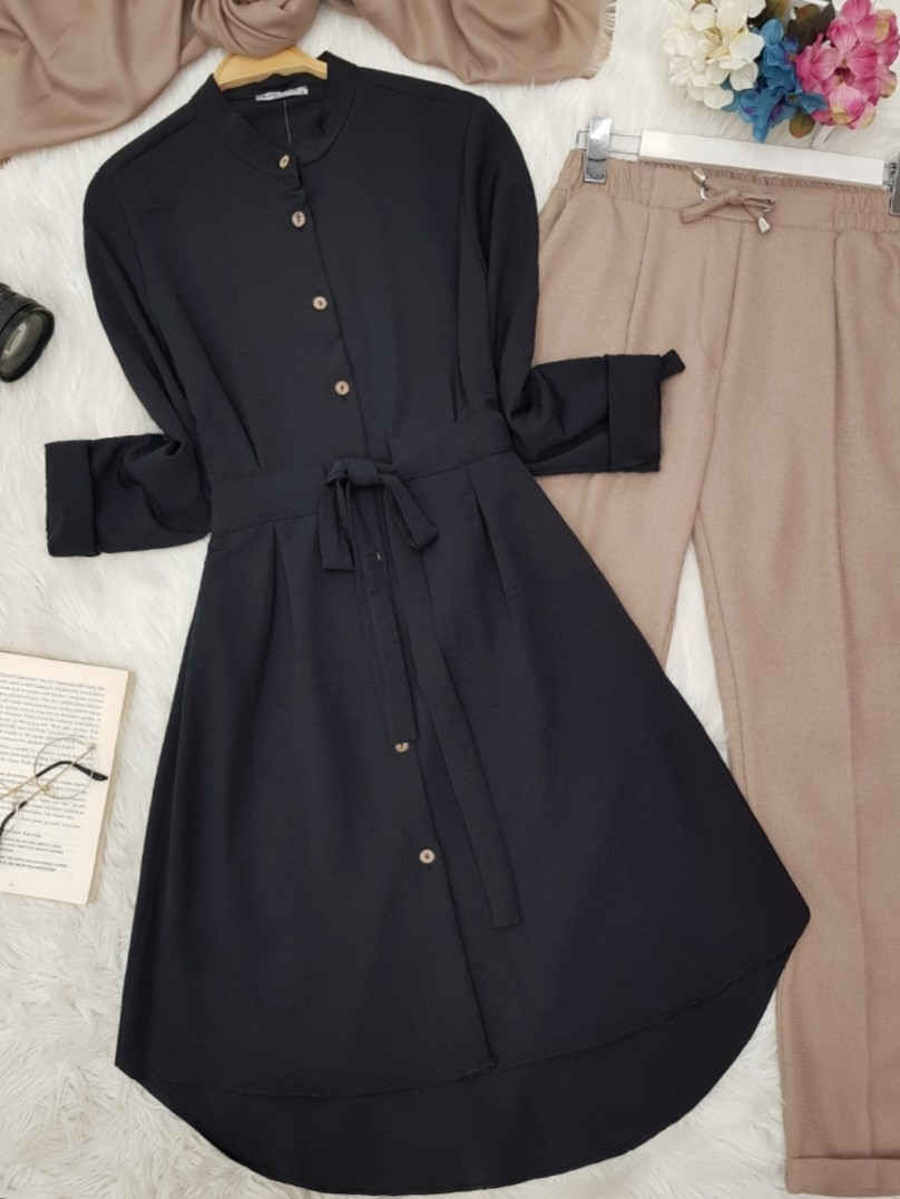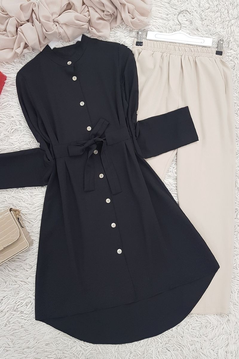 Belden Bağlamalı Tunik -Siyah