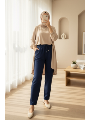 Boydan düğmeli ve kolu lastikli uzun krinkıl tunik, hafif kumaşı ve dökümlü yapısıyla gün boyu konfor sunar. Kırışık görünümüyle modern ve doğal bir tarz yakalarken, lastikli kollar pratik kullanım sağlar. Hem günlük kombinlerde hem de şık davetlerde rahatlıkla tercih edebileceğiniz bu tunik, dolabınıza zarif bir dokunuş katar.