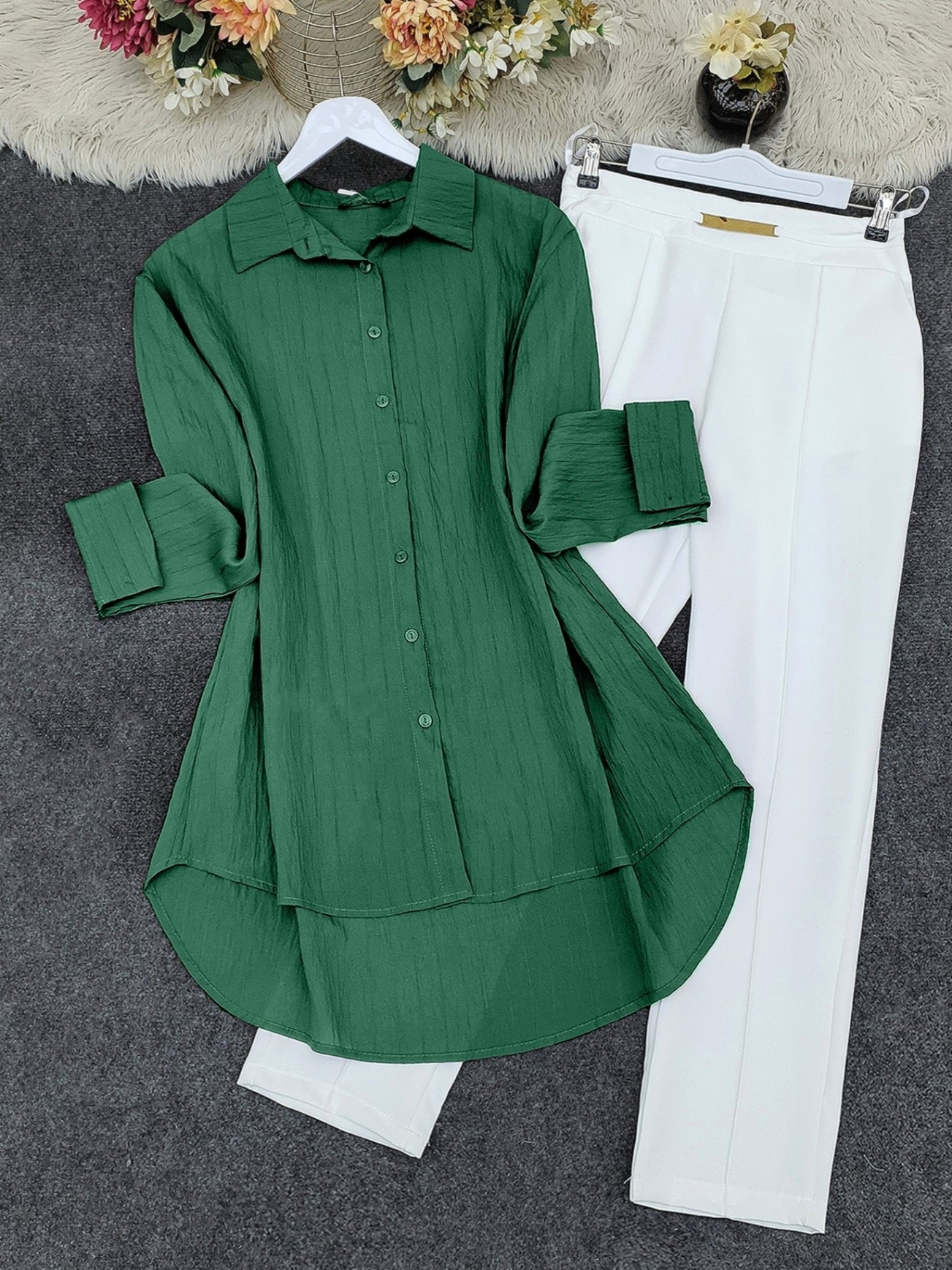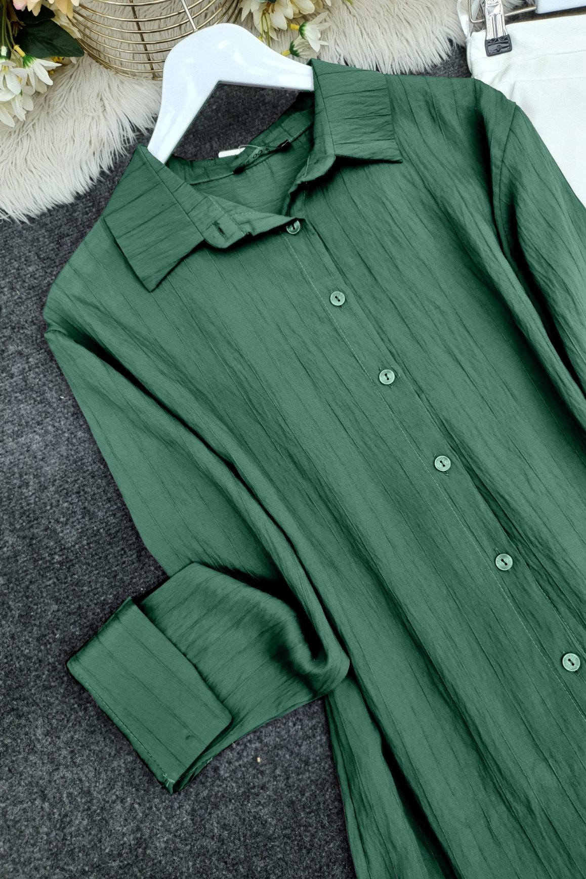 Çizgi desenli arkası uzun düğmeli gömlek, modern ve şık tasarımıyla her tarza hitap eder. Arkası uzun olan tasarımı, rahat hareket özgürlüğü sağlarken, çizgi deseni gömleğe dinamik bir hava katar. Hem günlük kullanımda hem de özel davetlerde rahatça kullanılabilecek bu gömlek, zarif bir görünüm arayanlar için mükemmel bir seçenek. Şıklığınızı tamamlayacak bu parçayı gardırobunuzda bulundurmalısınız!