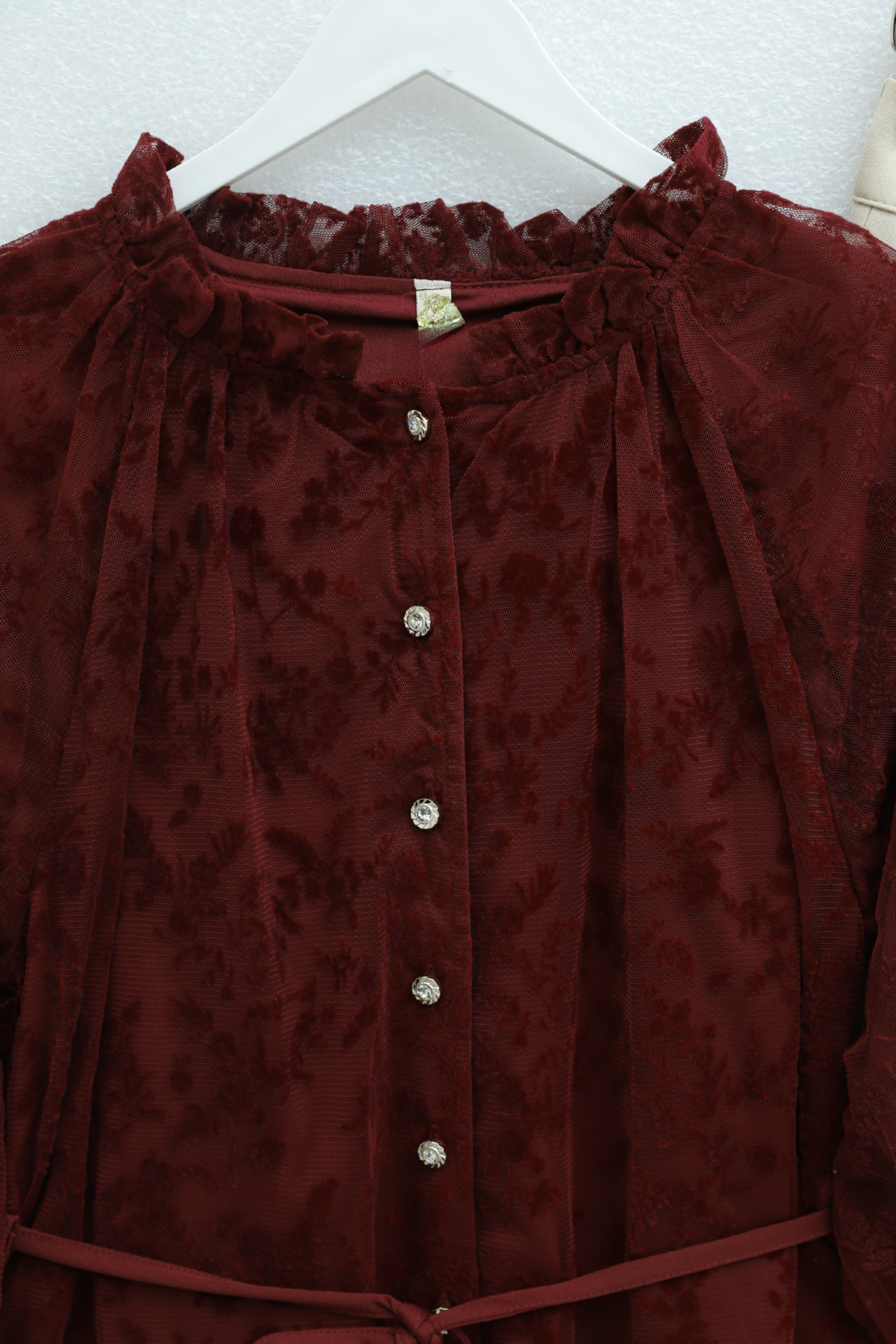 Dik Yaka Beli Bağcıklı Balon Kol Flog Baskılı Astarlı Tül Tunik, zarif ve dikkat çekici bir stil sunar. Dik yaka ve balon kol detayı şık bir duruş kazandırırken, flog baskı tasarıma modern bir hava katar. Beli bağcıklı formu silueti zarif şekilde vurgular. Astarlı tül yapısı hafif ve akışkan bir görünüm sağlar.