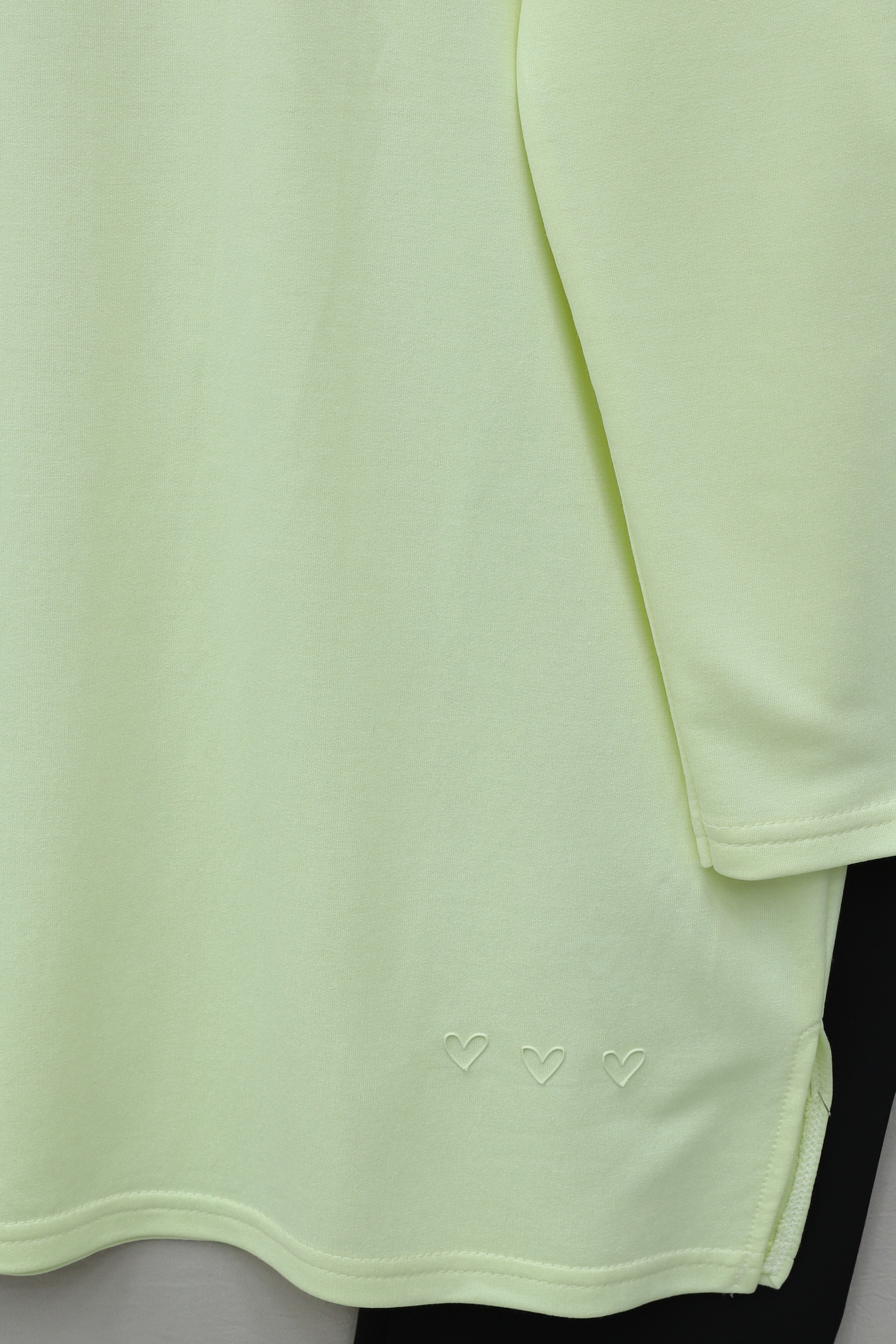 Eteği Kalp Detaylı Yırtmaçlı Salaş Penye Tunik -Açık Sarı